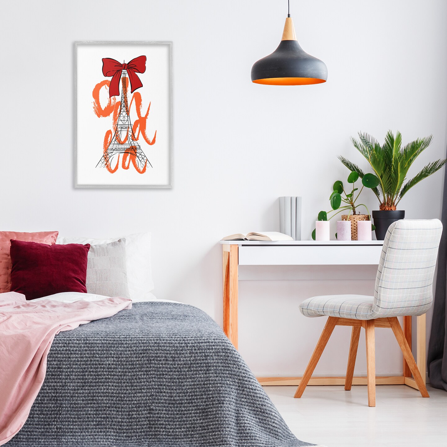 Stupell Industries Oh La La Eiffel Tower Framed Giclee Wall Art Design by Martina Pavlova