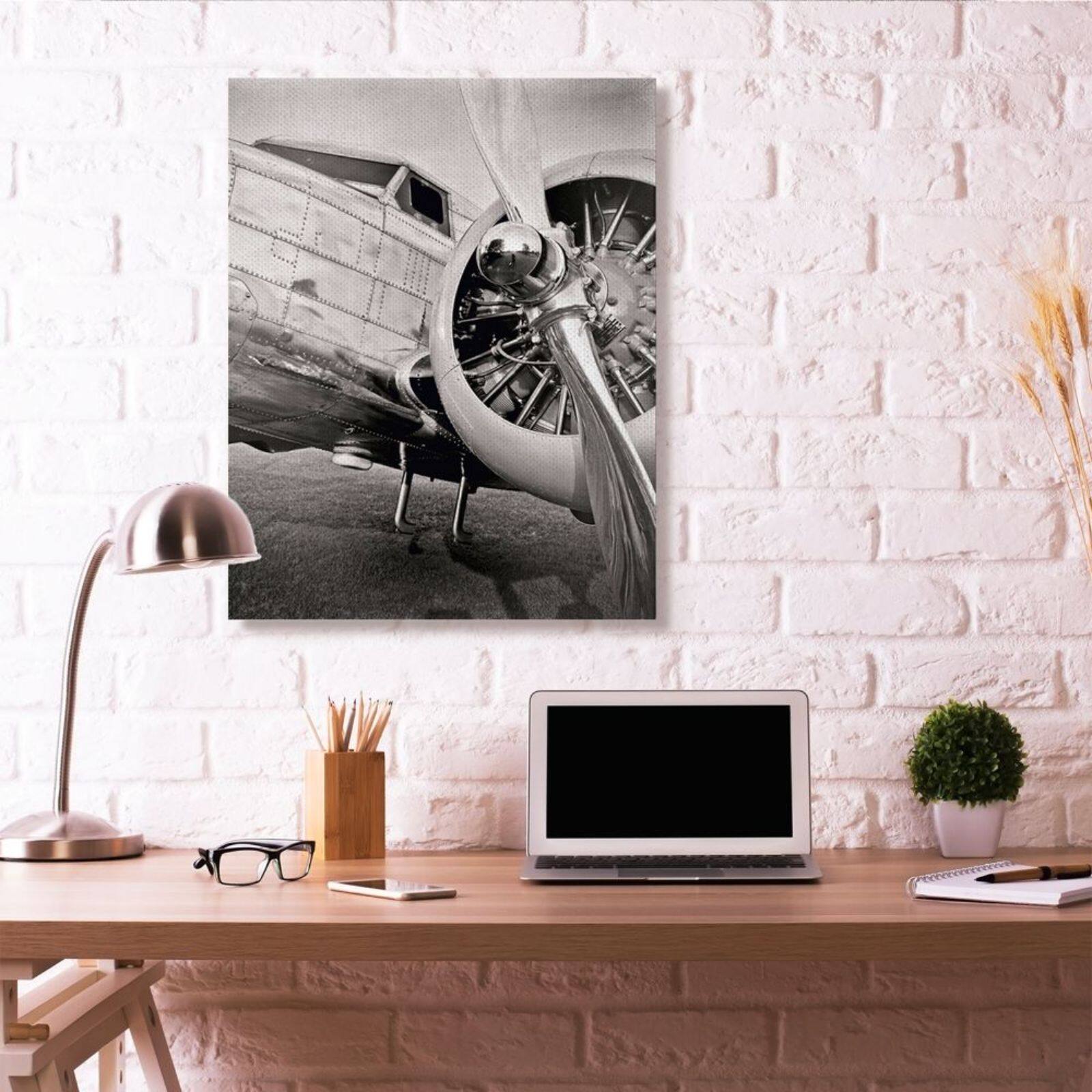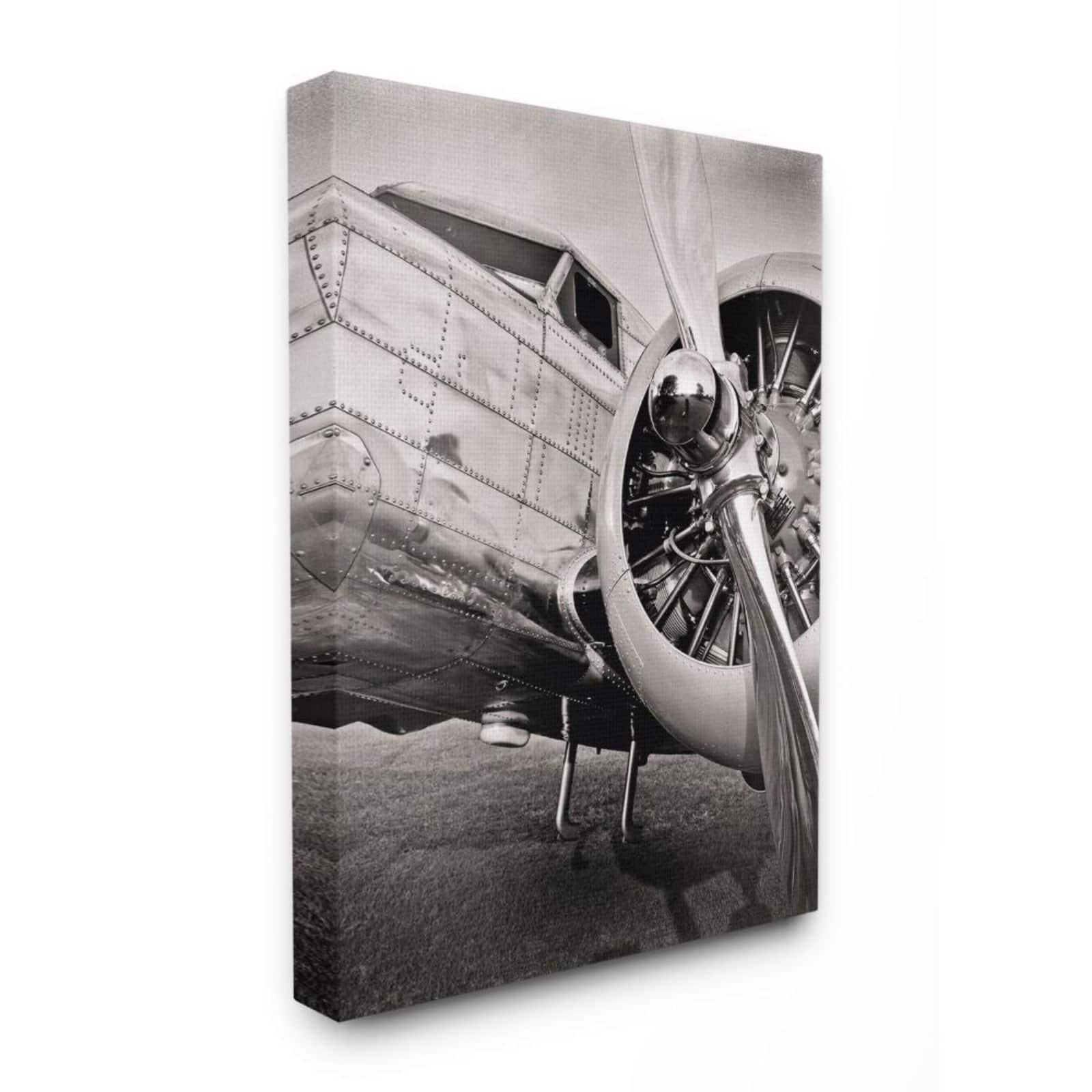 Stupell Industries Old School Vintage Airplane Propeller Black & White Photograph Canvas Wall Art