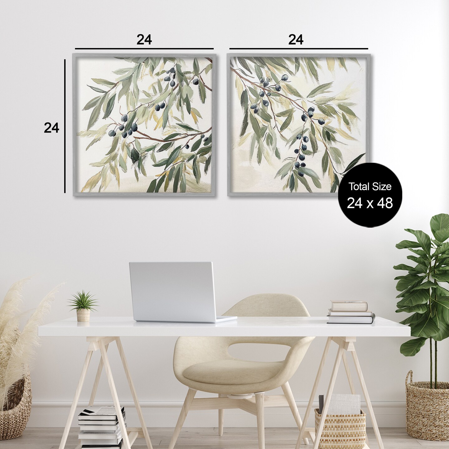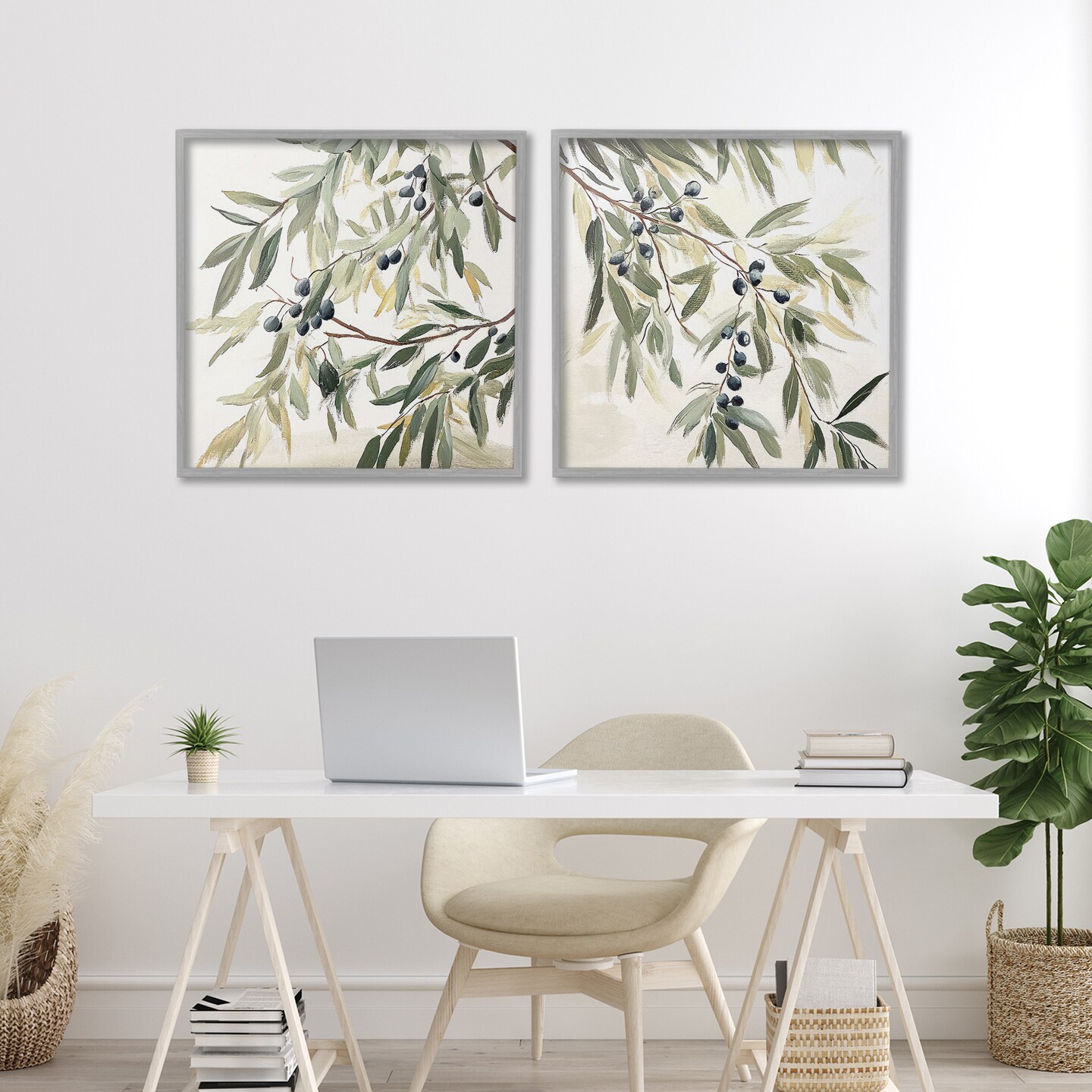 Stupell Industries Olive Branches in Pastel 2pc Framed Giclee Set, design by Mona Grace