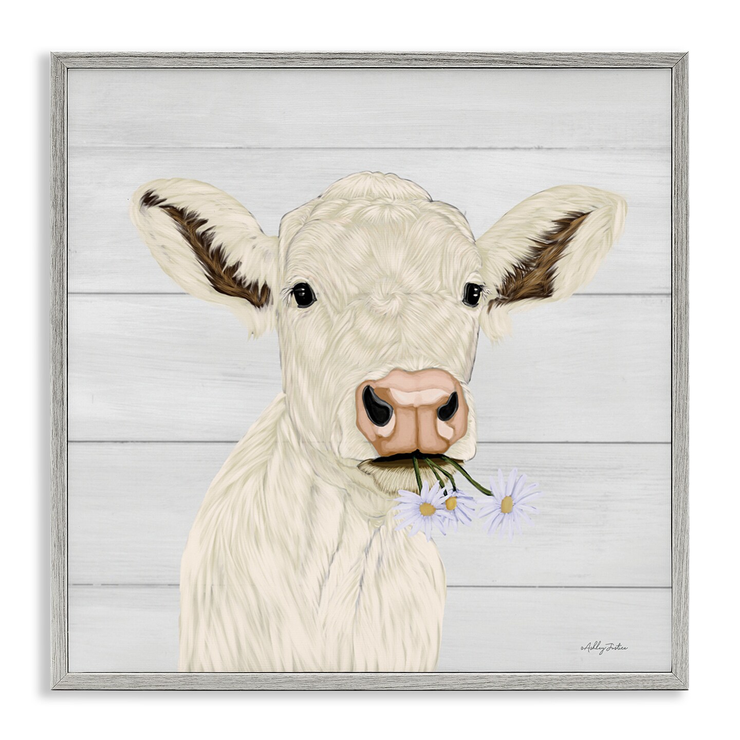 Stupell Industries Opal Baby Cow Portrait Framed Giclee, design by Ashley Justice