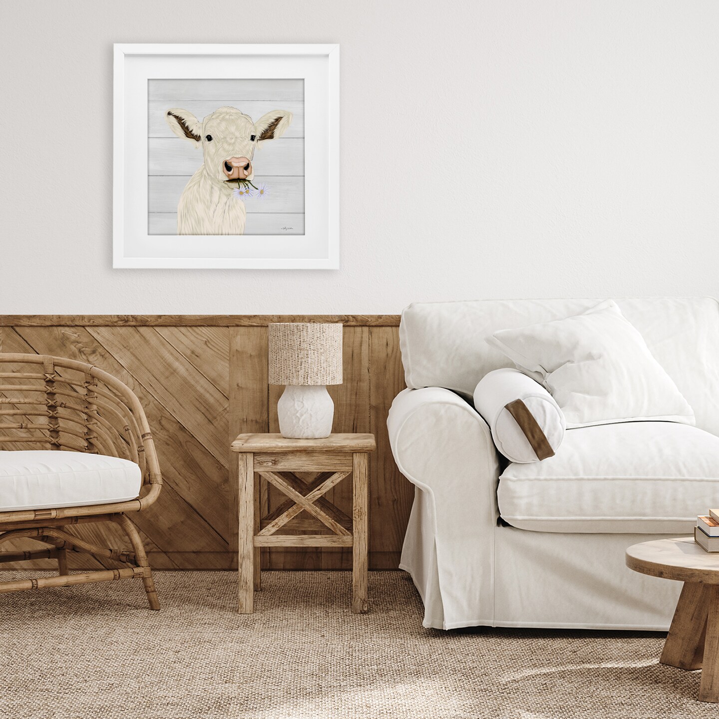 Stupell Industries Opal Baby Cow Portrait Framed Print Under Glass, design by Ashley Justice