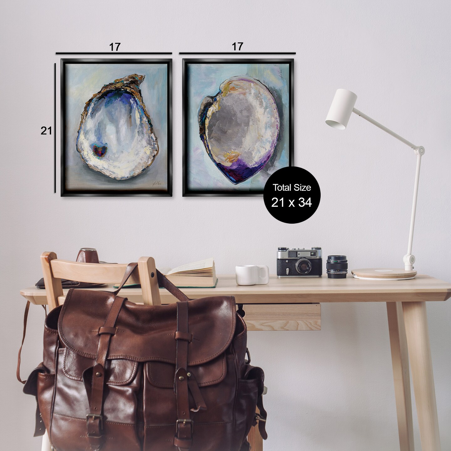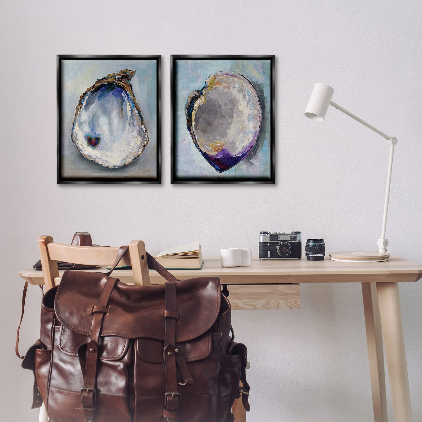 Stupell Industries Open Oyster Clam Shell 2 pc Framed Floater Canvas Wall Art Set Design by Jeanette Vertentes