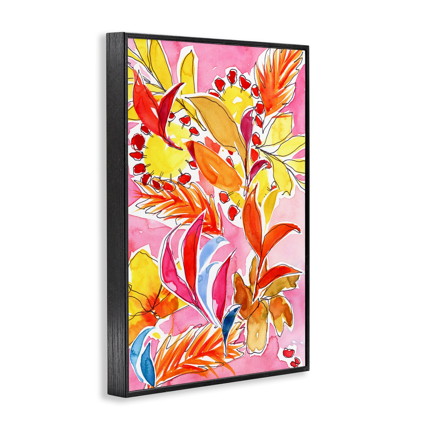 Stupell Industries Orange Botanicals on Pink Framed Giclee Wall Art Design by Victoria Barnes