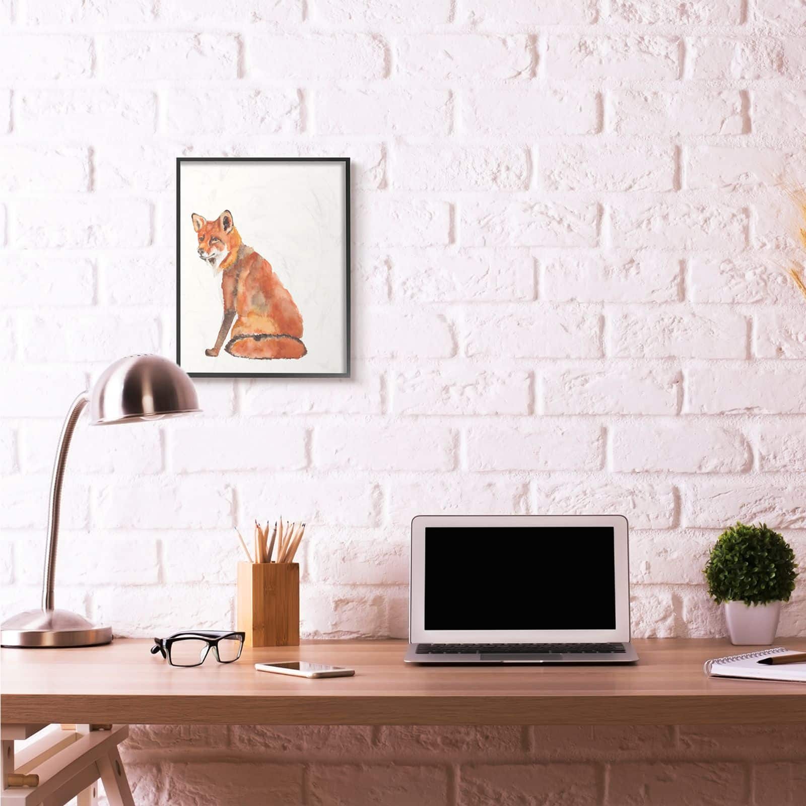 Stupell Industries Orange Curious Fox Watercolor Black Wooden Framed Wall Art