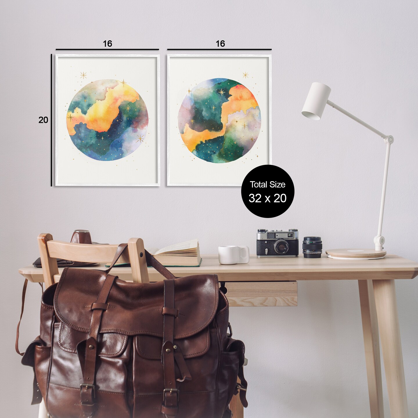 Stupell Industries Outer Space Round Galaxies 2pc Framed Giclee Wall Art Set Design by Grace Popp
