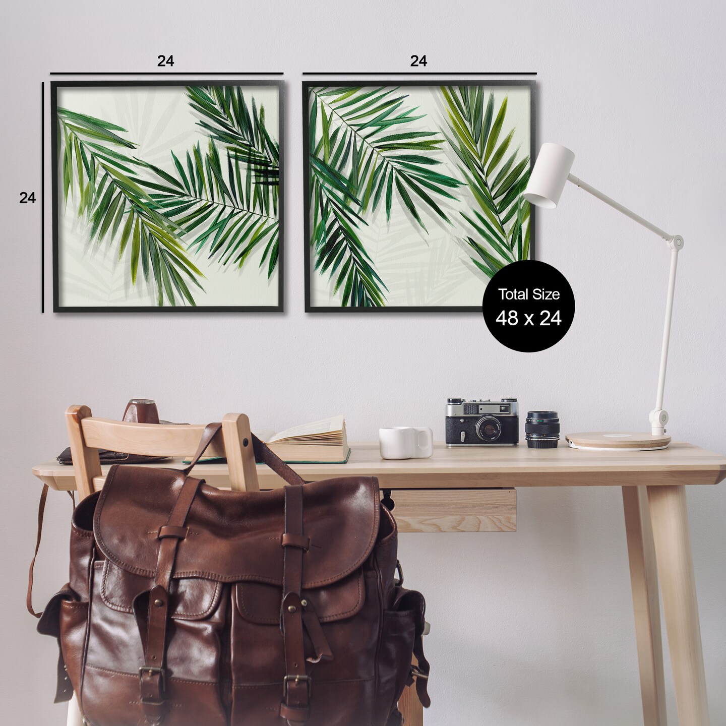 Stupell Industries Palm Fronds over Neutral 2pc Framed Giclee Wall Art Set Design by Hannah Dawson