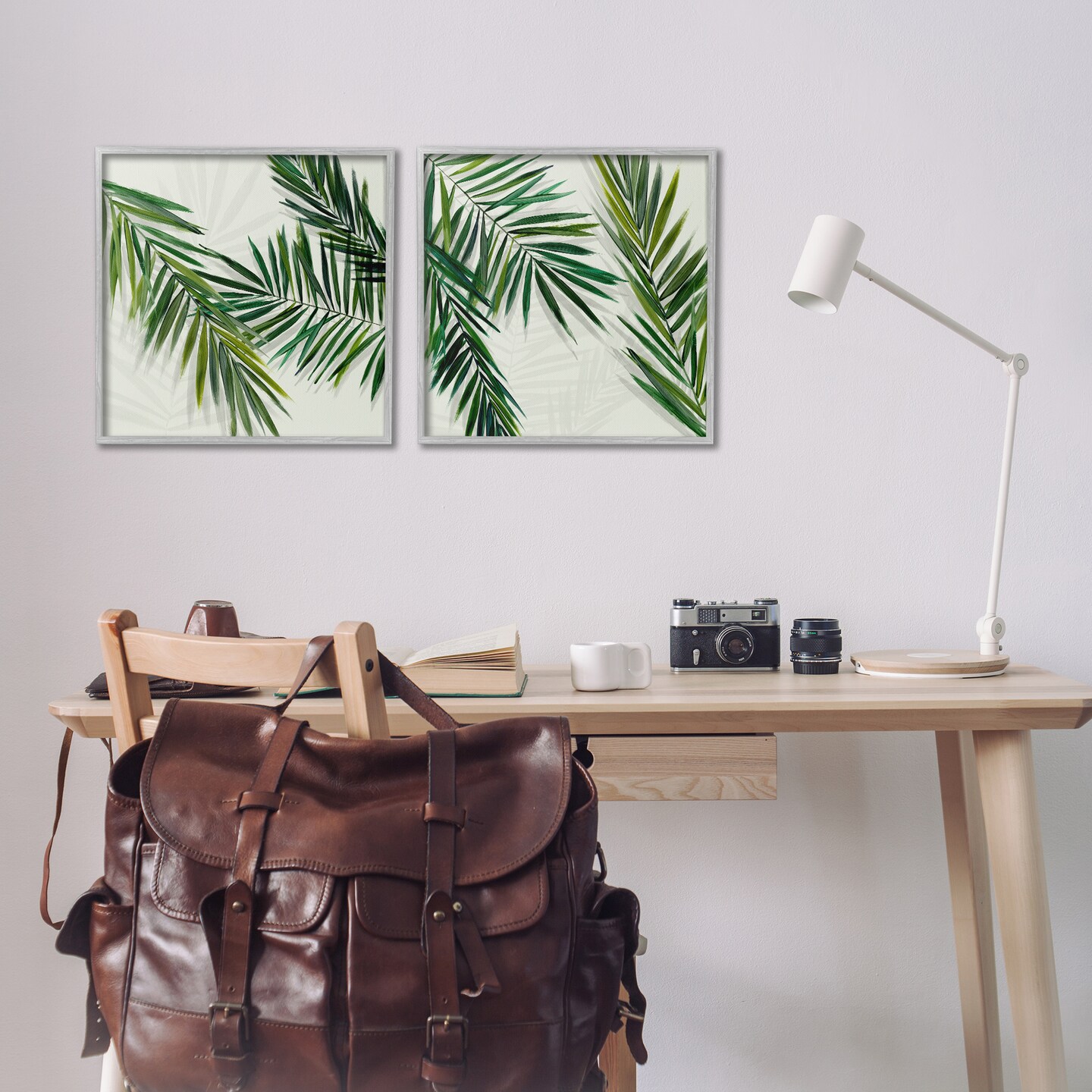Stupell Industries Palm Fronds over Neutral 2pc Framed Giclee Wall Art Set Design by Hannah Dawson
