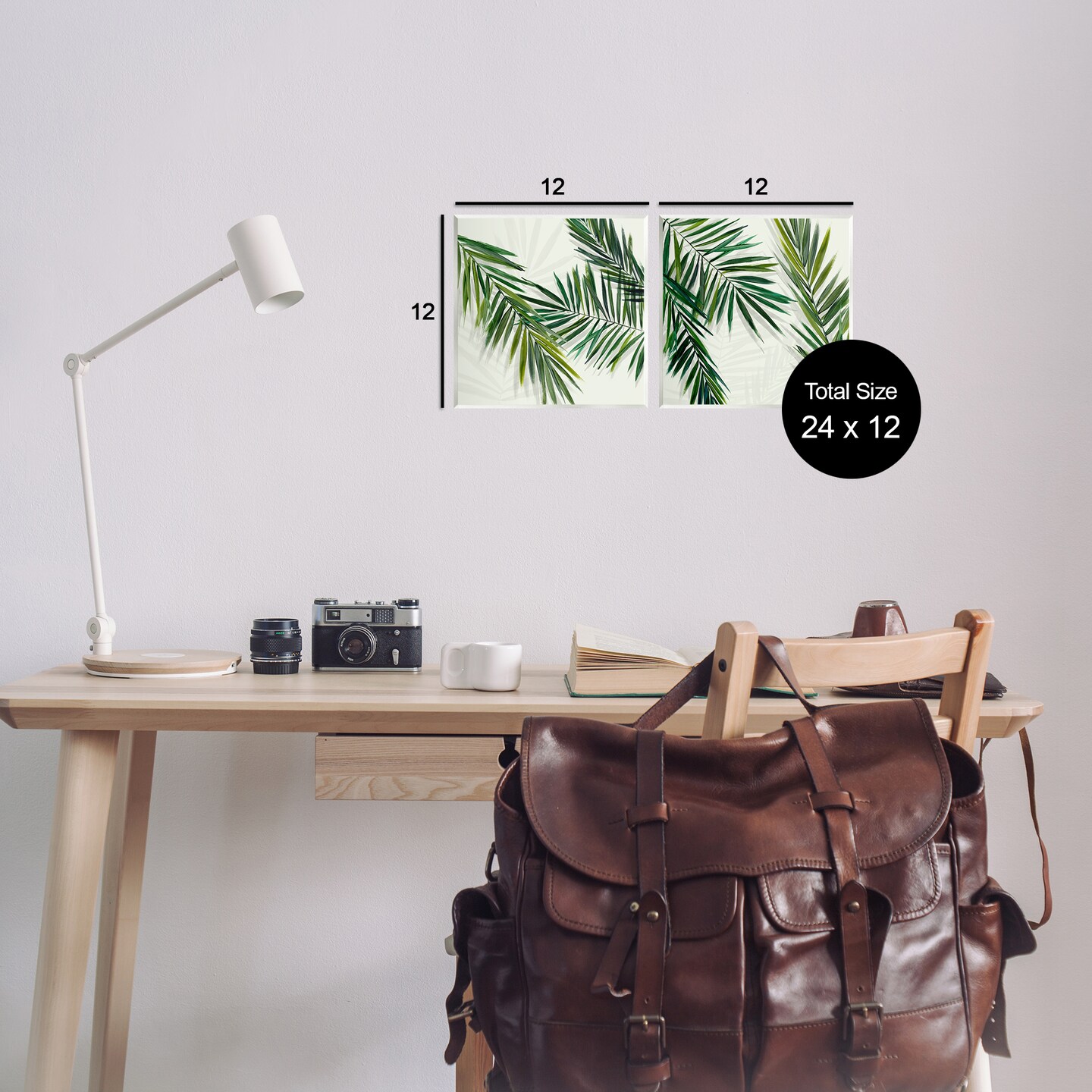 Stupell Industries Palm Fronds over Neutral 2pc Wall Plaque Art Set Design by Hannah Dawson