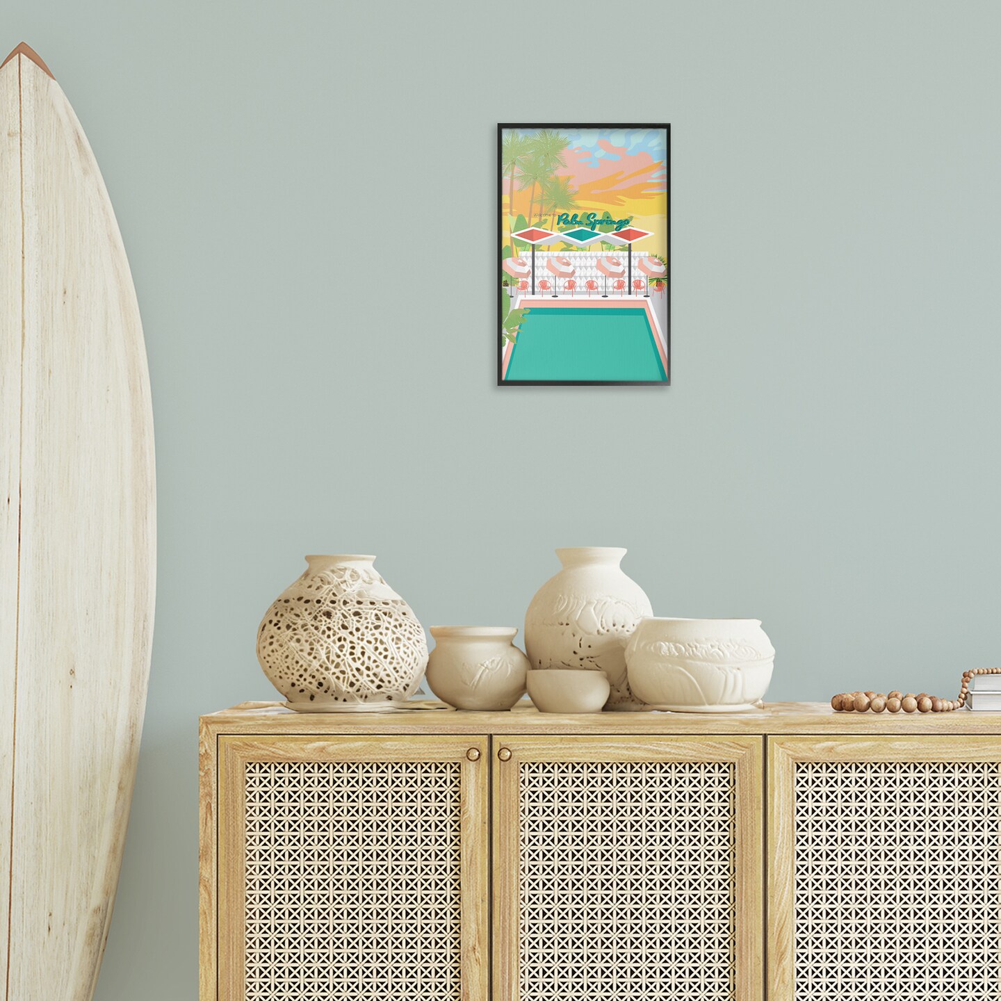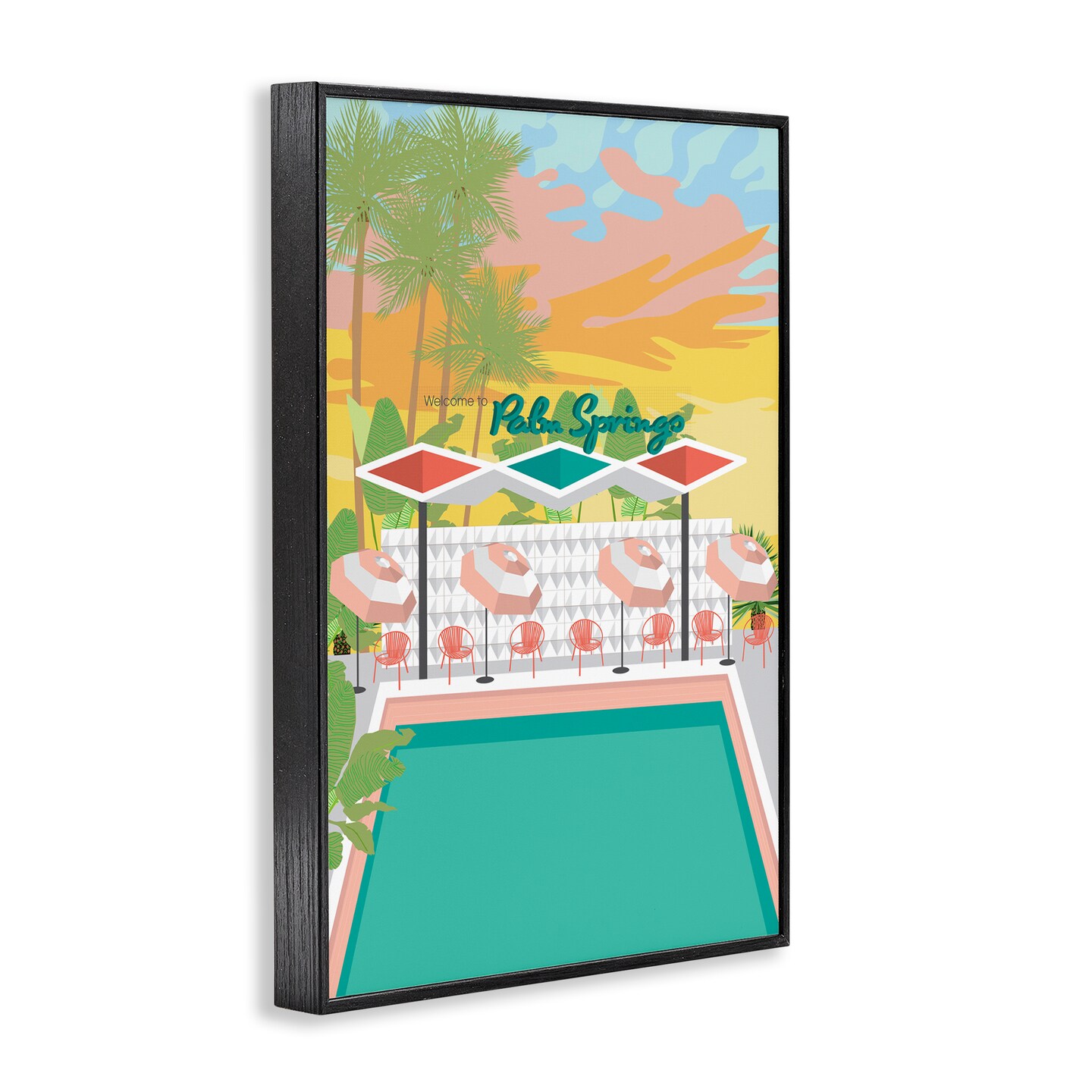 Stupell Industries Palm Springs Pool Time Framed Giclee Wall Art Design by Jen Bucheli