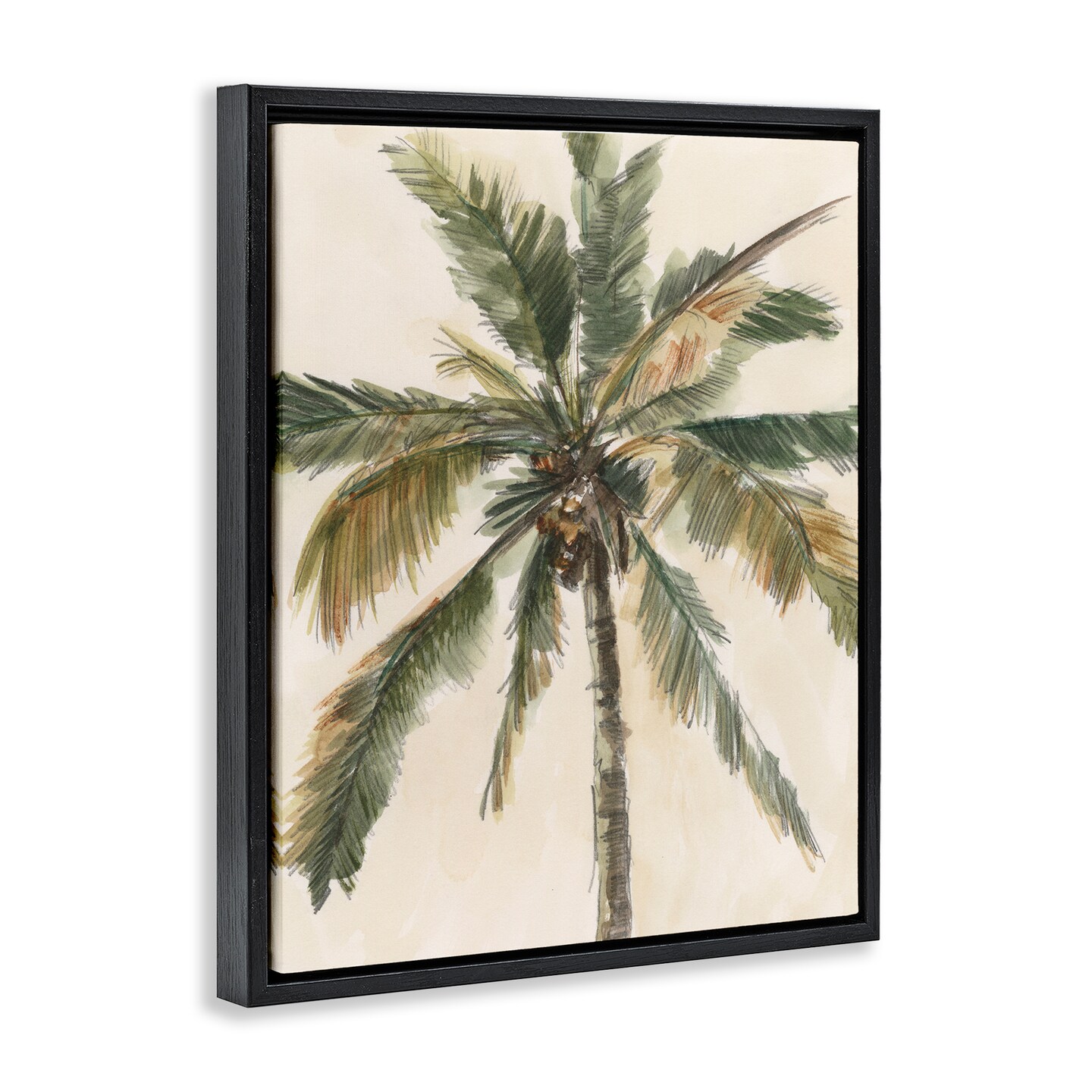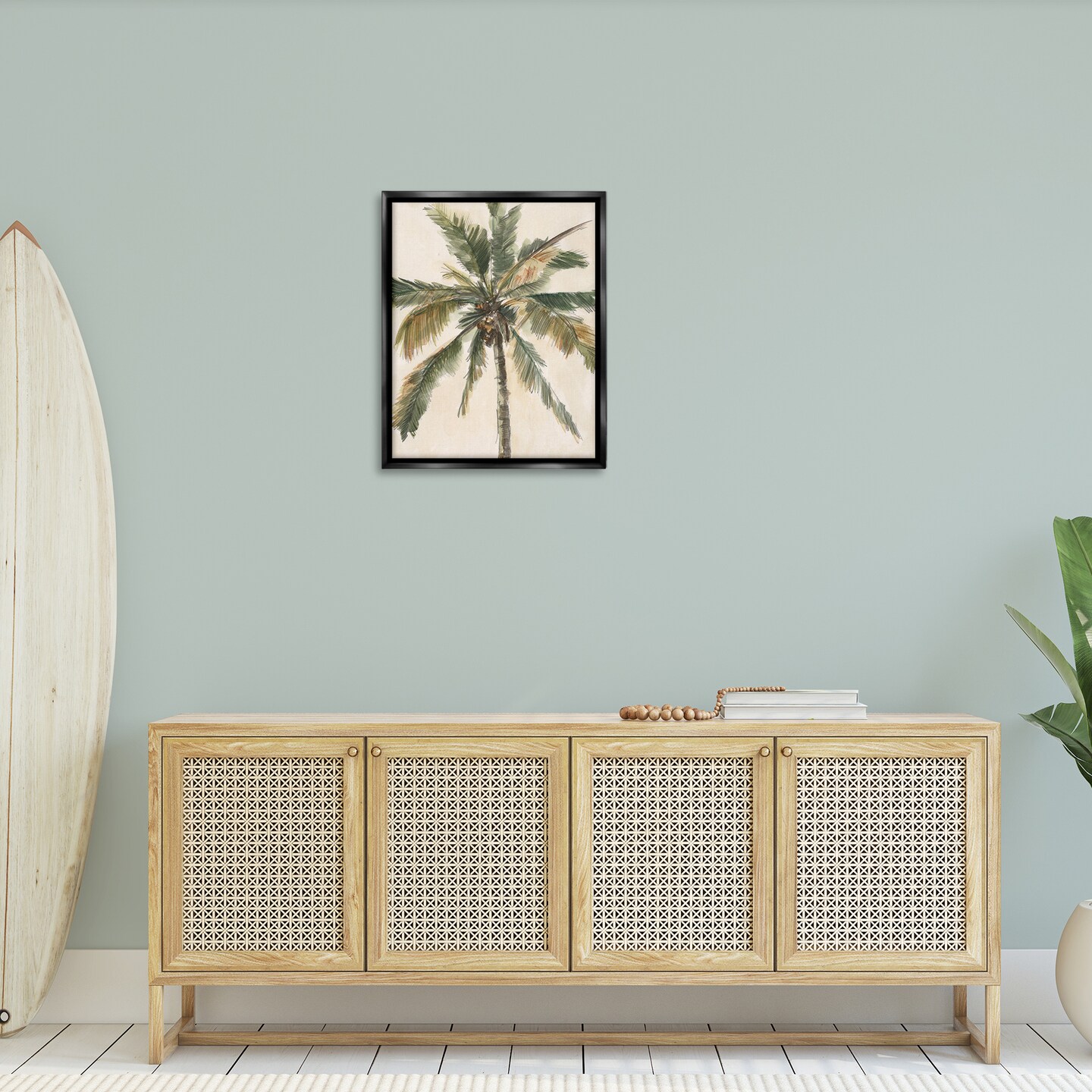 Stupell Industries Palm Tree on Beige Framed Floater Canvas Wall Art Design by Ethan Harper
