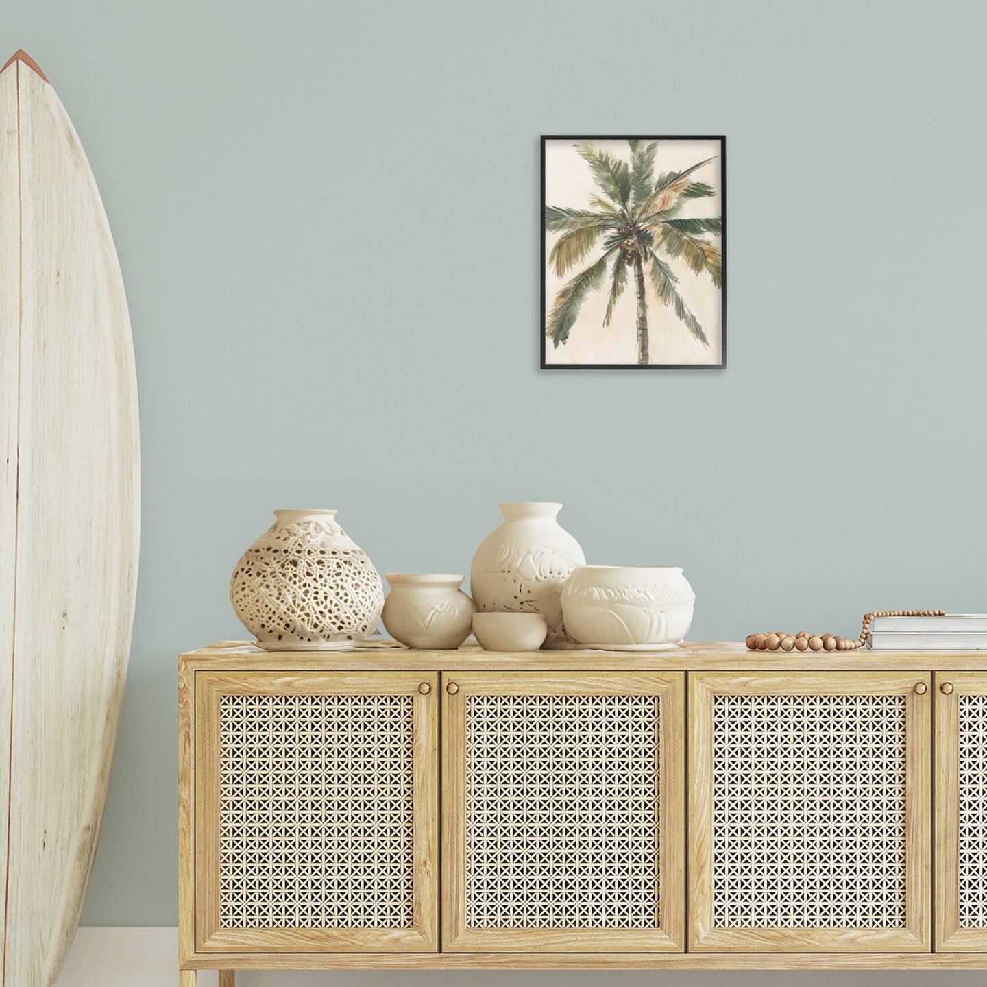 Stupell Industries Palm Tree on Beige Framed Giclee Wall Art Design by Ethan Harper