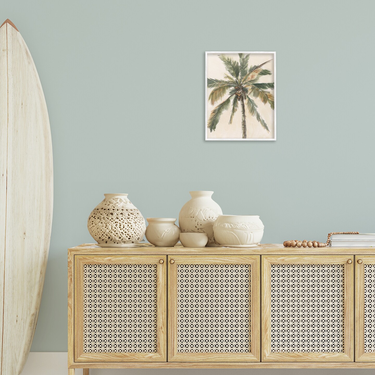 Stupell Industries Palm Tree on Beige Framed Giclee Wall Art Design by Ethan Harper