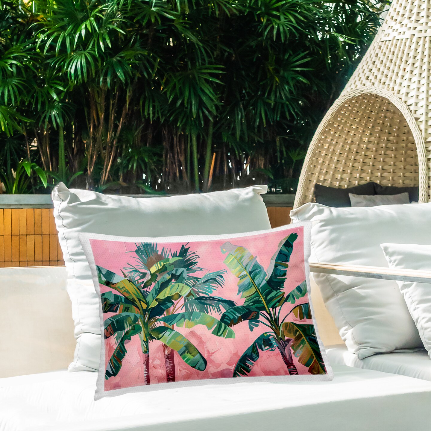 Stupell Industries Palm Tree Tops on Pink Outdoor Printed Pillow design by LSR Design Studio, 14 x 7 x 20
