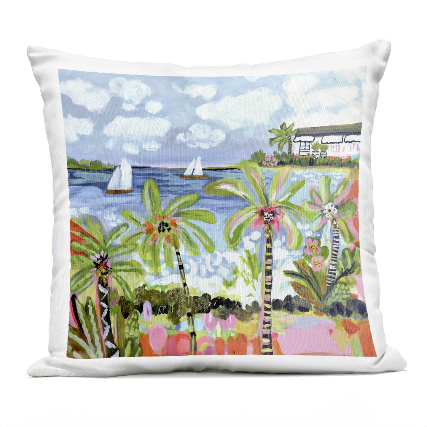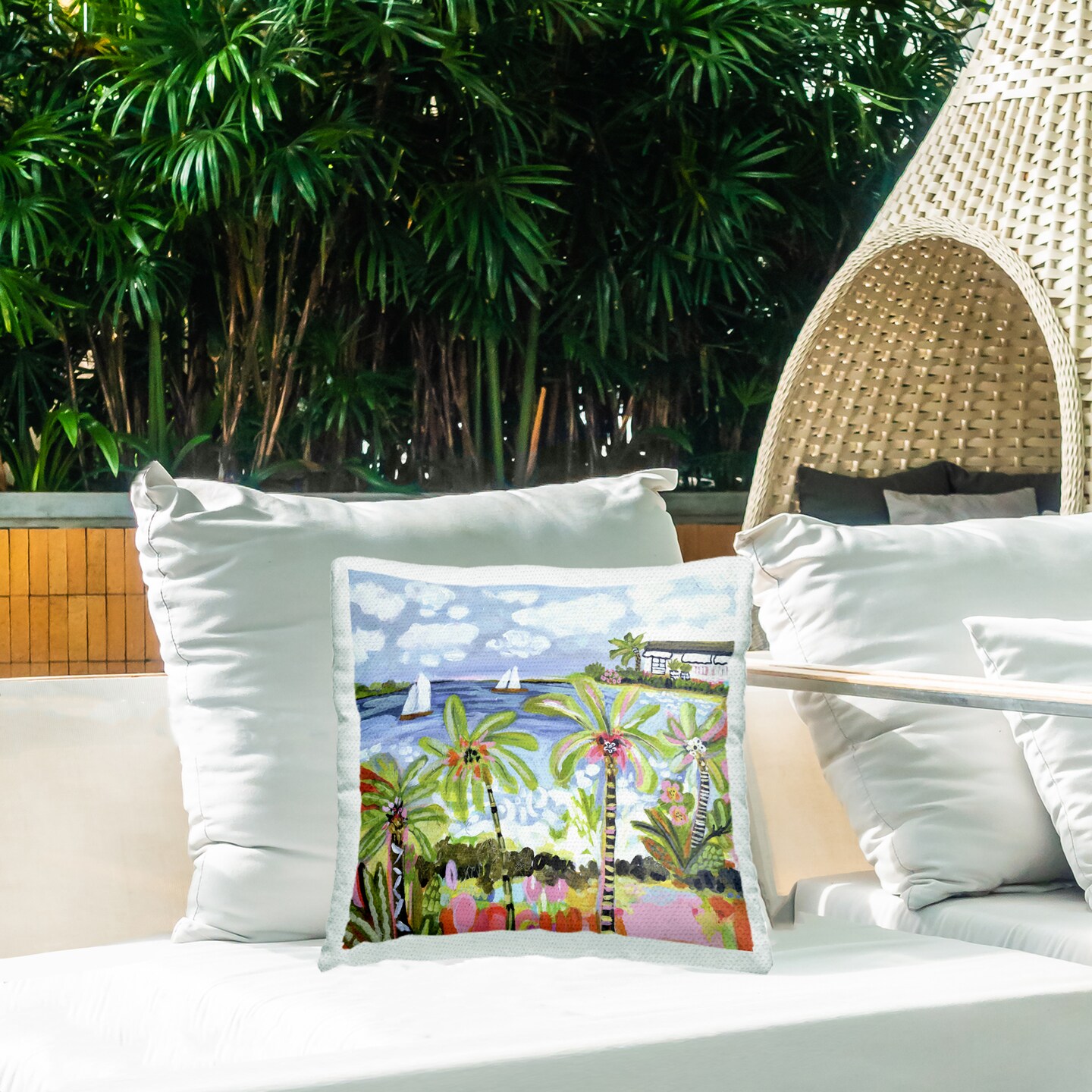 Stupell Industries Palm Trees in Bright Sun Outdoor Printed Pillow design by Karen Fields, 18 x 7 x 18