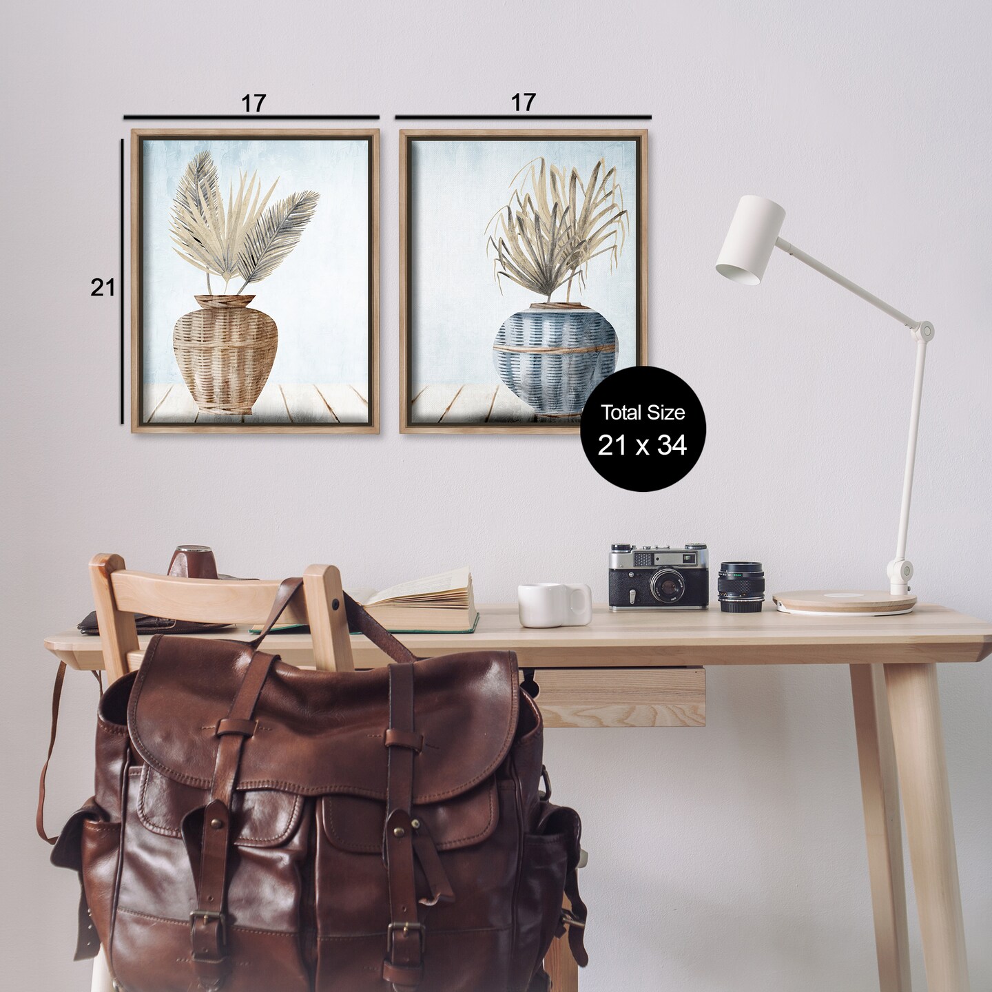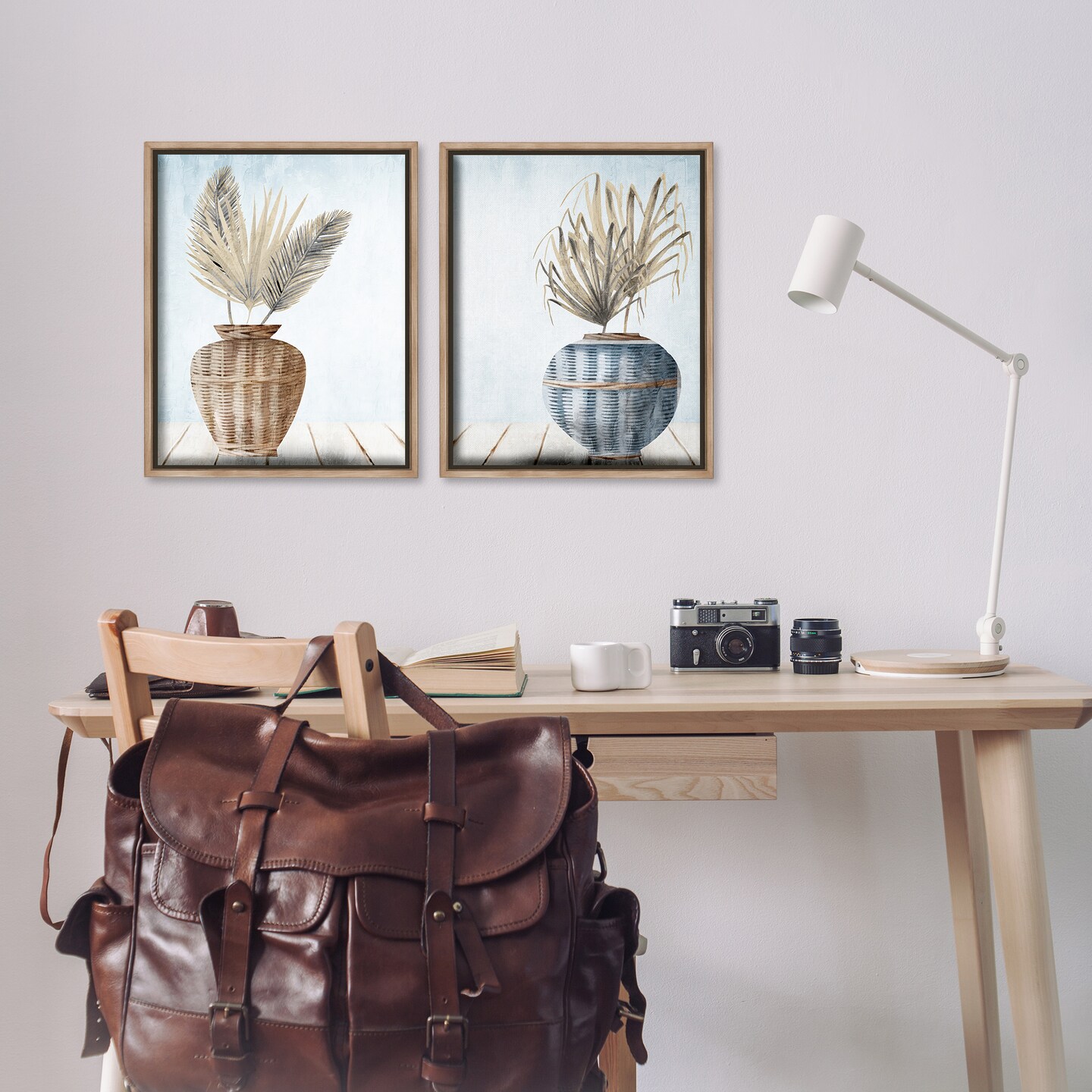 Stupell Industries Palms in Rattan Planters 2 pc Framed Floater Canvas Wall Art Set Design by Kim Allen