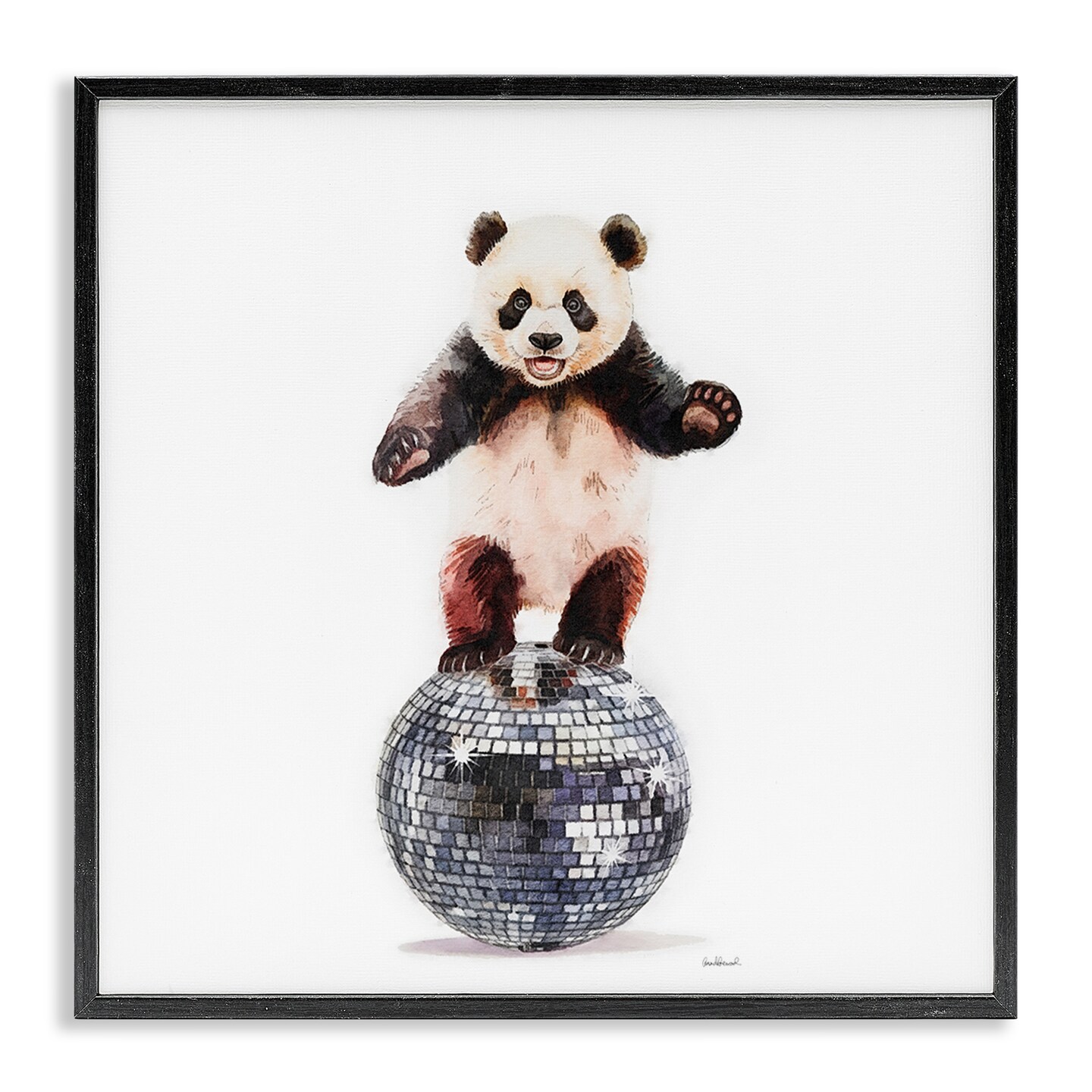 Stupell Industries Panda Balancing on Disco Ball Framed Giclee Design by Amanda Greenwood