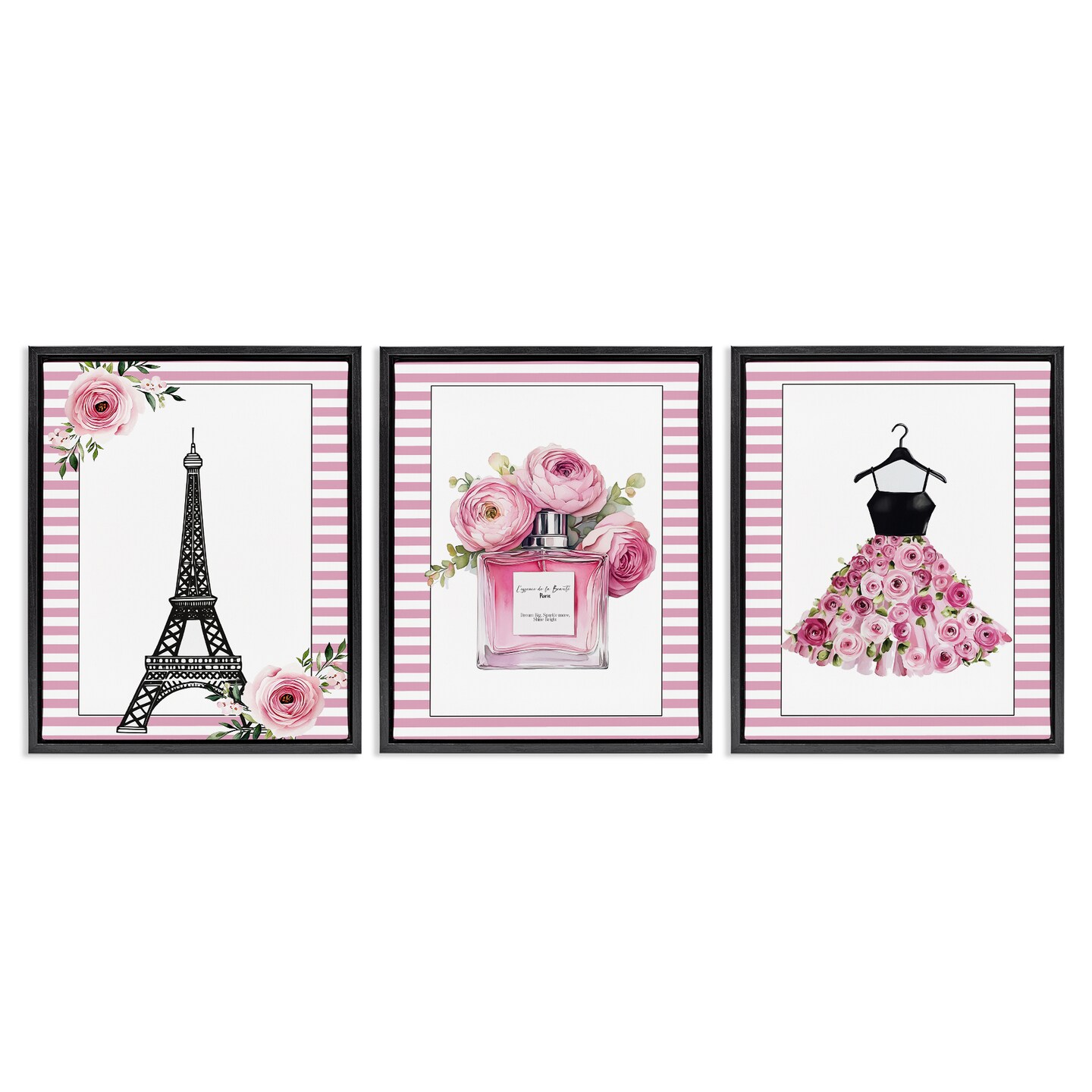 Stupell Industries Parisian Glam with Stripes 3pc Floating Frame Set, design by Christine Simpson Art