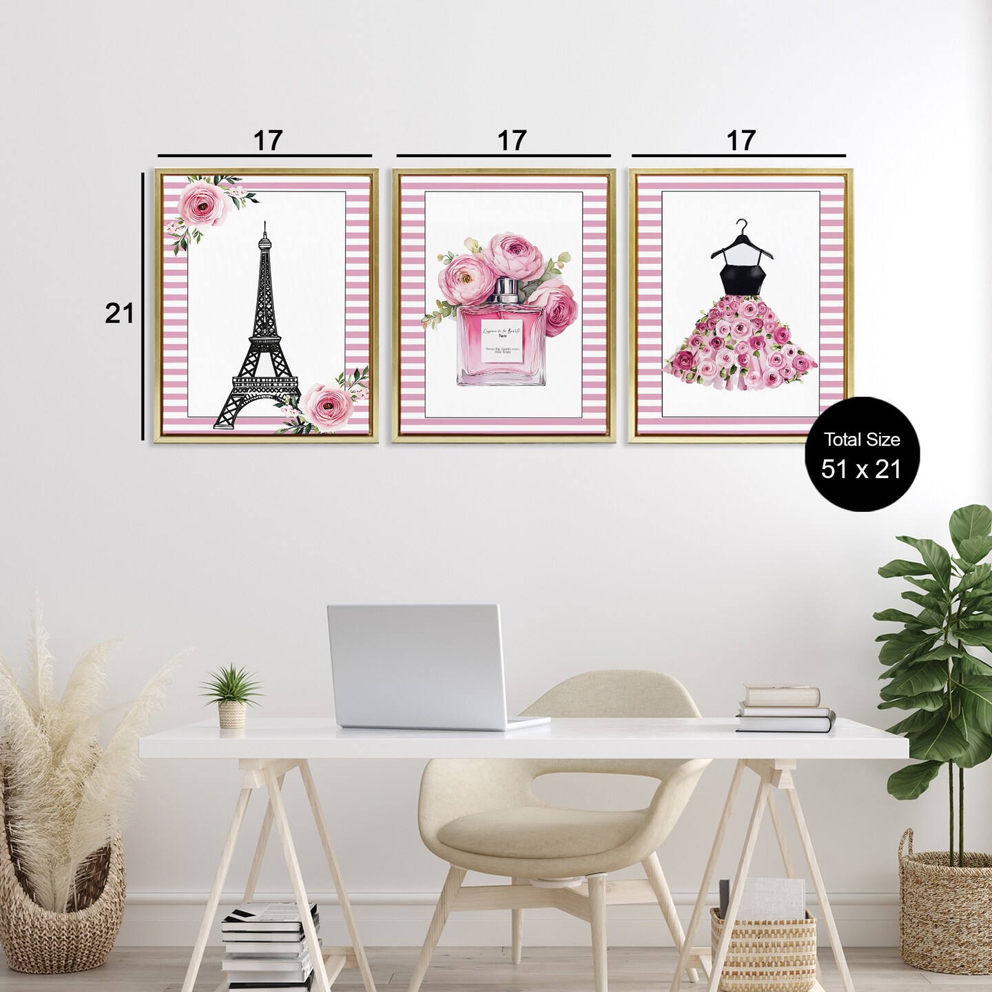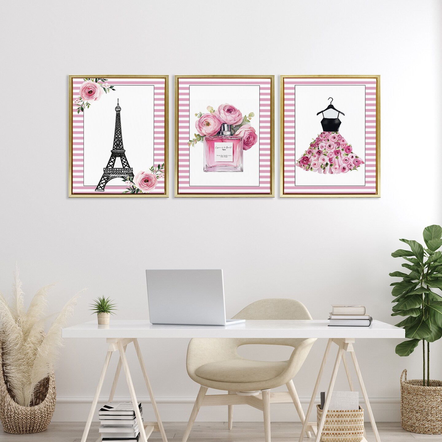 Stupell Industries Parisian Glam with Stripes 3pc Floating Frame Set, design by Christine Simpson Art