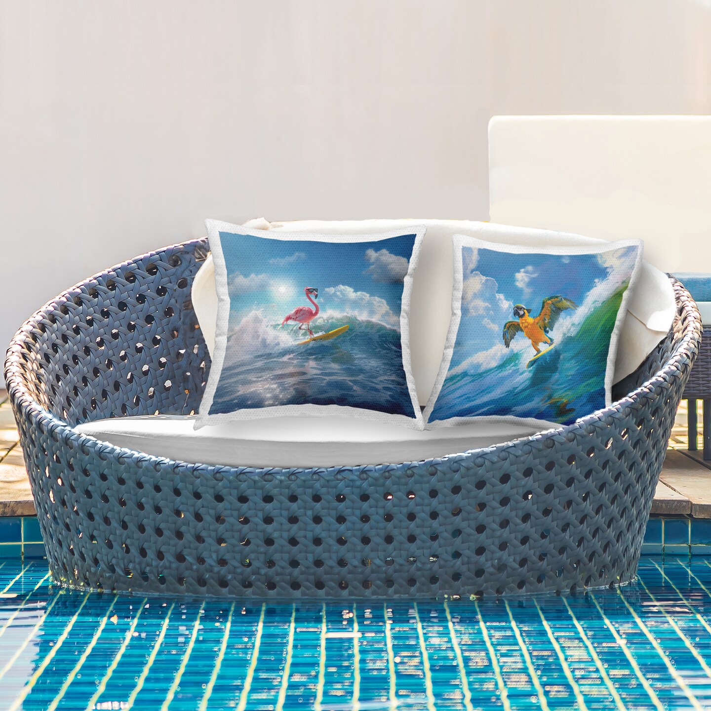 Stupell Industries Parrot & Flamingo Surf 2pc Outdoor Printed Throw Pillow Set Design by Jim Baldwin, 18 x 7 x 18