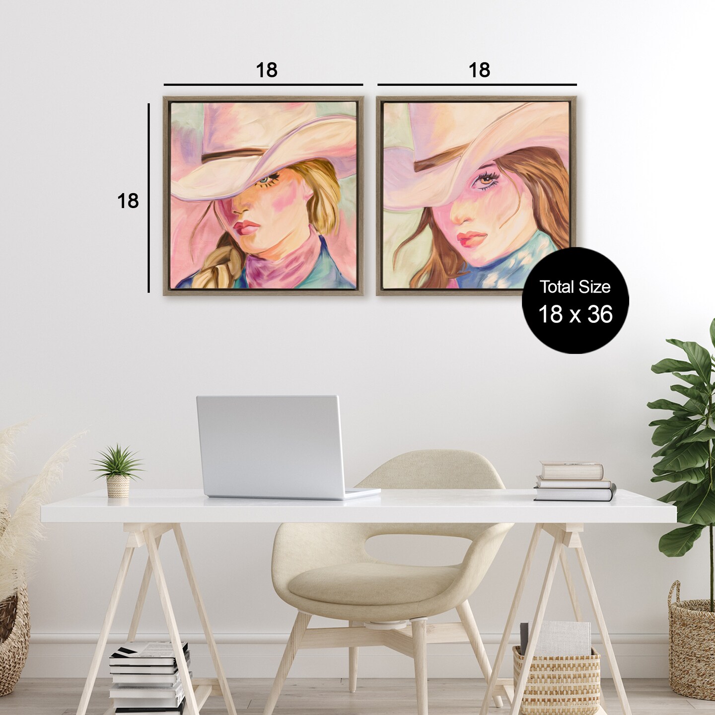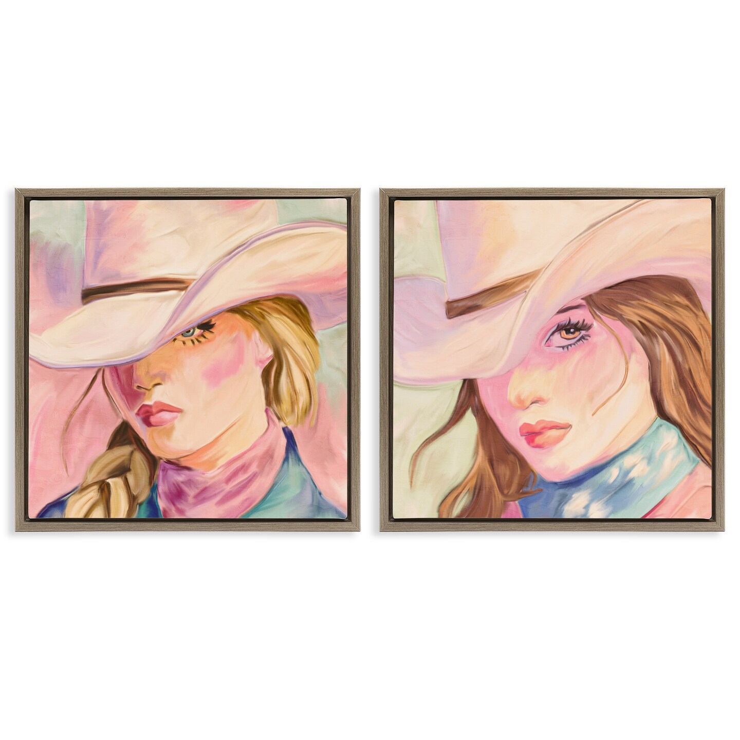 Stupell Industries Pastel Cowgirls Gazing 2pc Floating Frame Set, design by Kim Allen