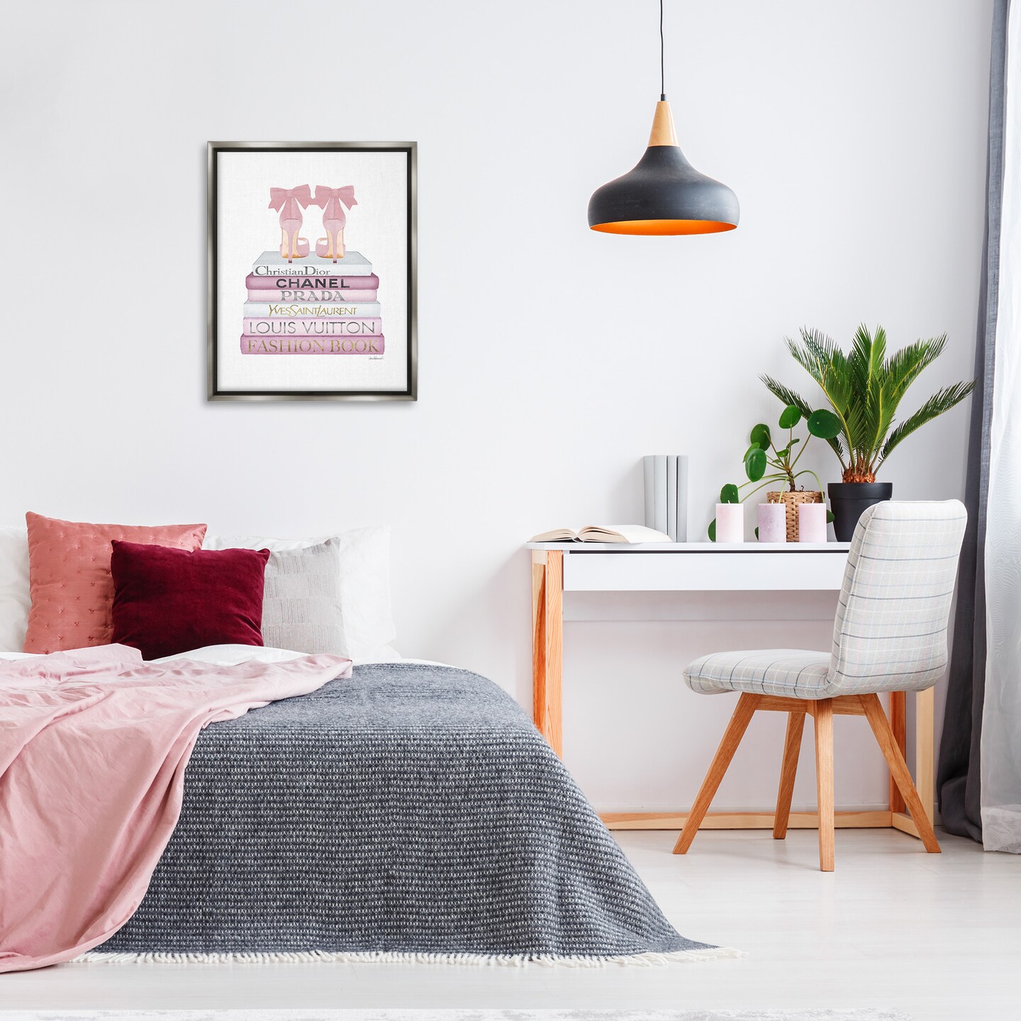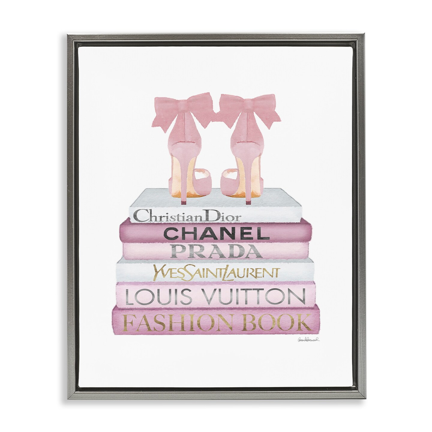Stupell Industries Pastel Pink Heels & Books Framed Floater Canvas Wall Art