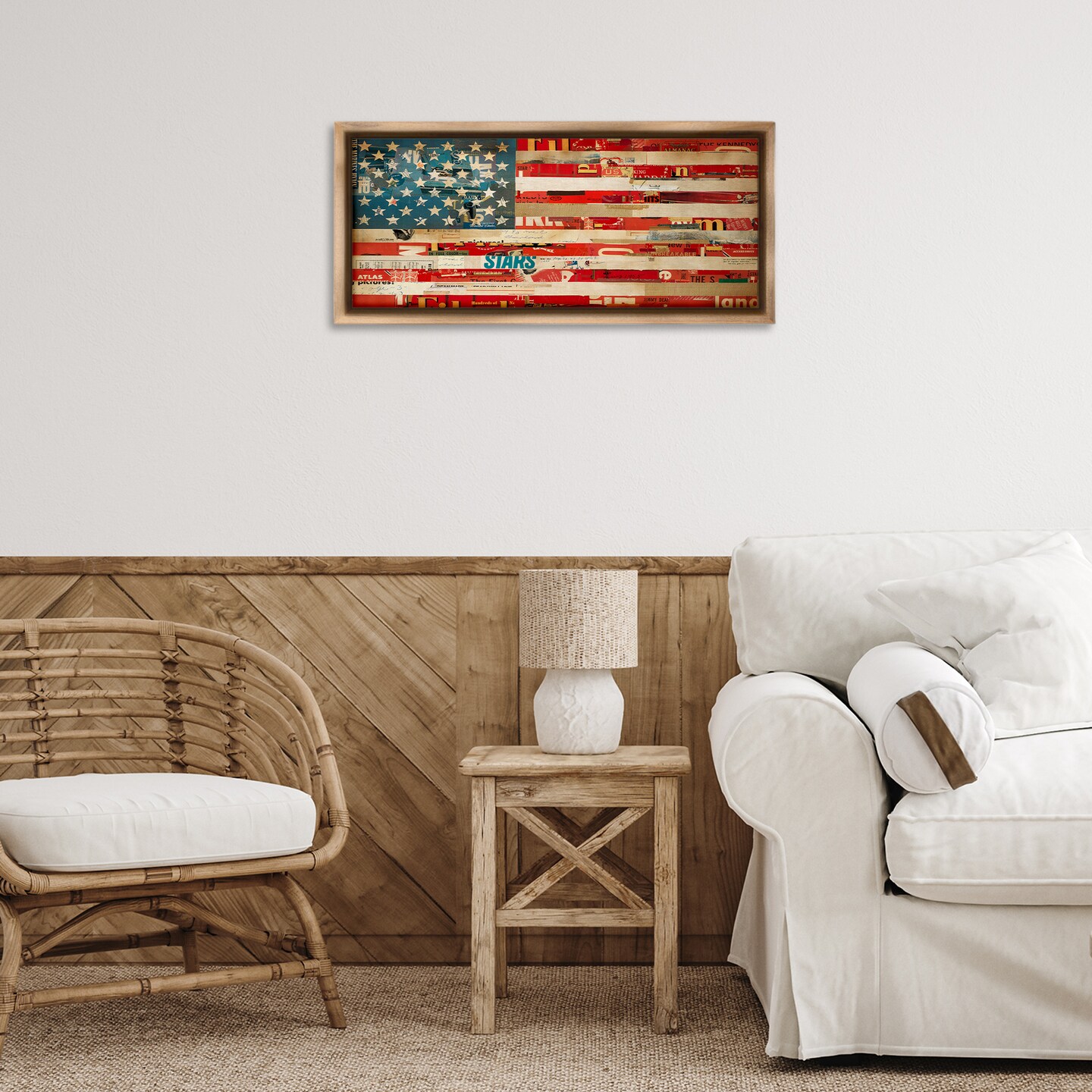 Stupell Industries Patriotic Collaged Flag Framed Floater Canvas Wall Art Design by Kelsey Hochstatter