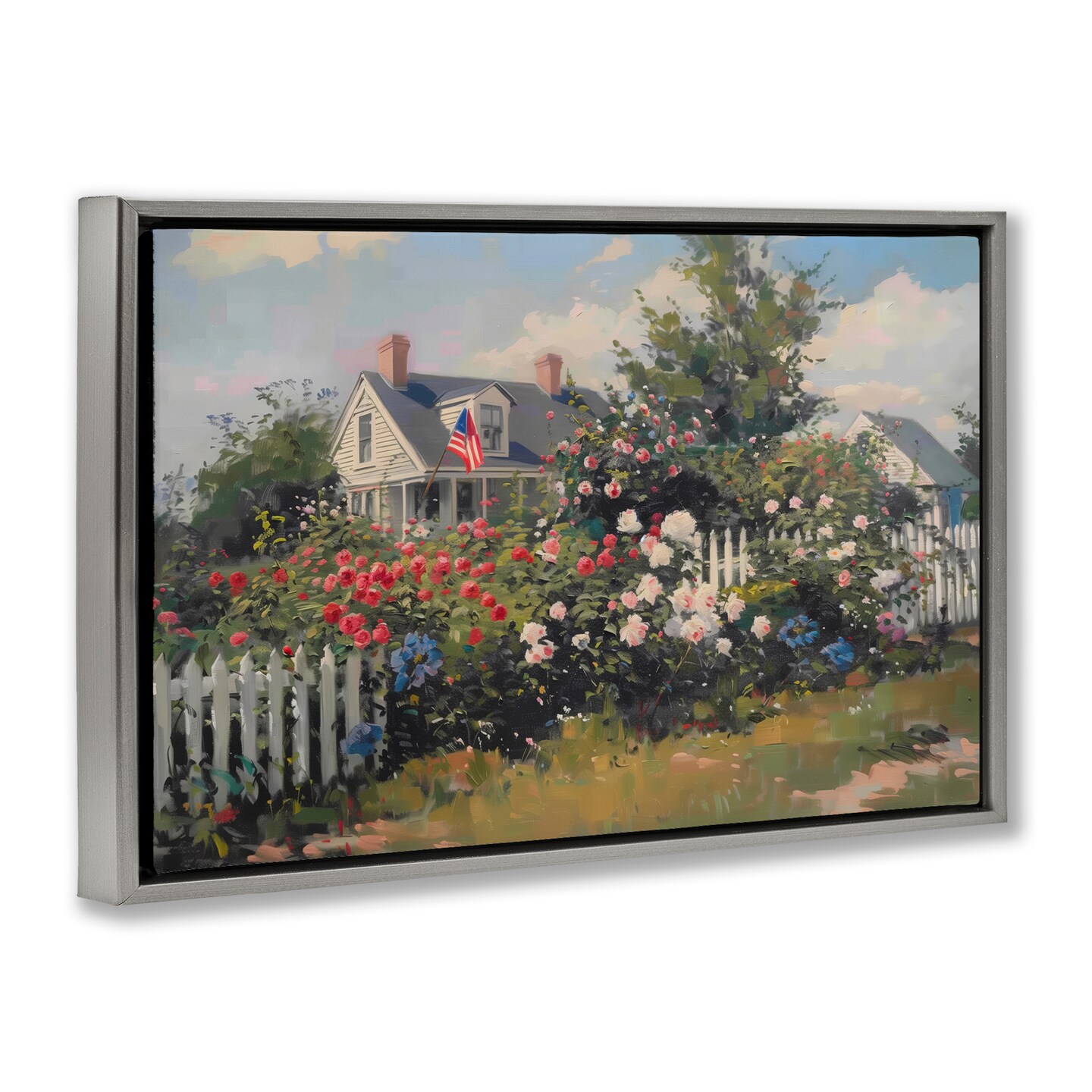 Stupell Industries Patriotic Cottage Garden Floater Framed Canvas Wall Art Design by Arlington Prints