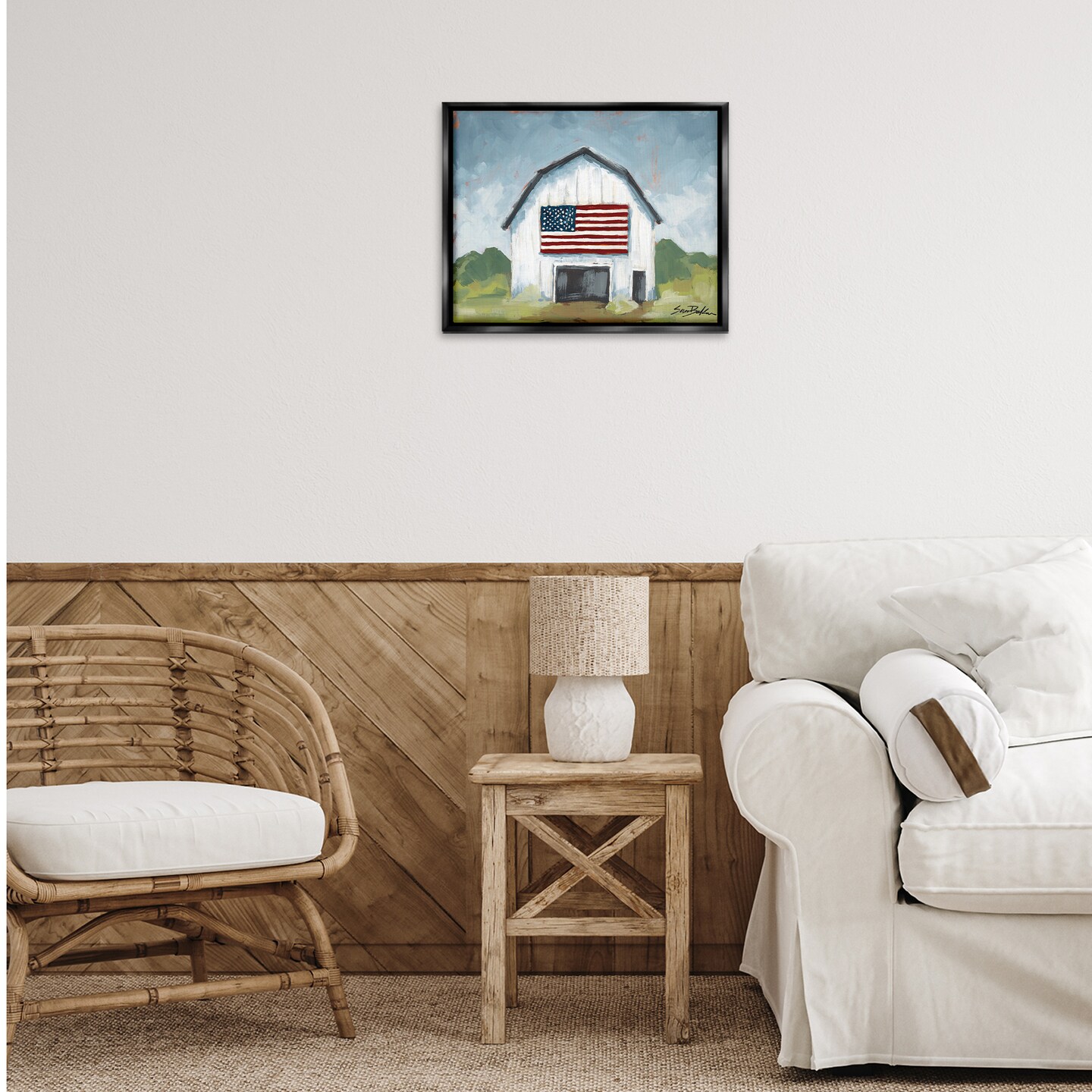 Stupell Industries Patriotic Country Barn Floater Framed Canvas Wall Art Design by Sara Baker
