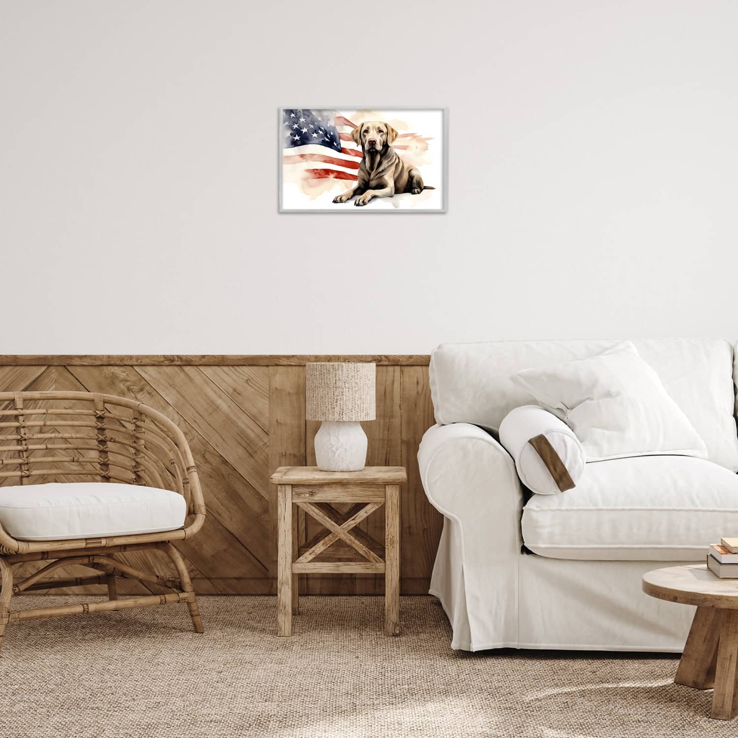 Stupell Industries Patriotic Dog with Flag Framed Giclee Art