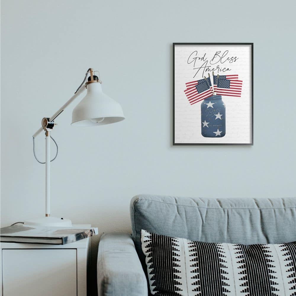 Stupell Industries Patriotic God Bless America Country Quote Jar Flags Framed Wall Art