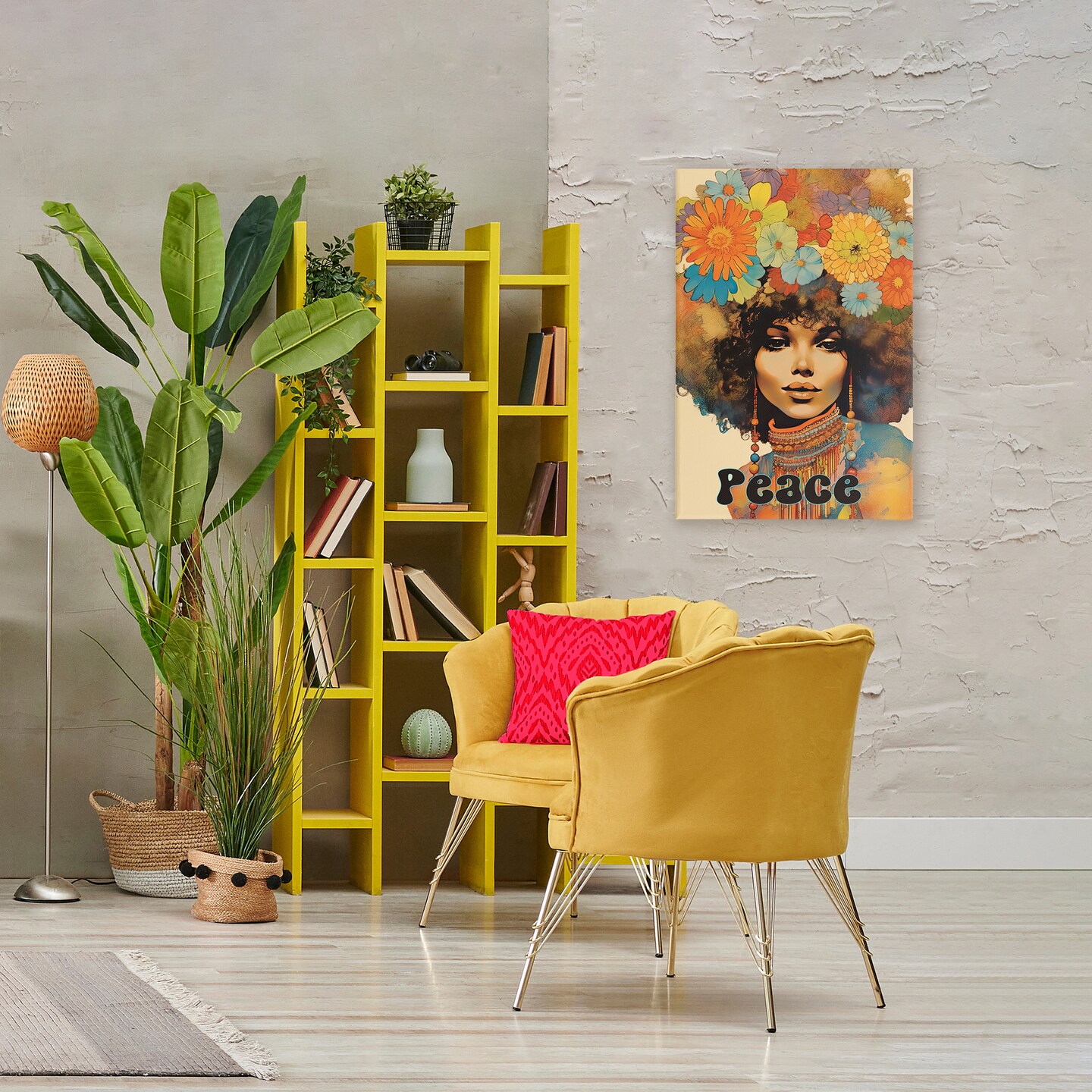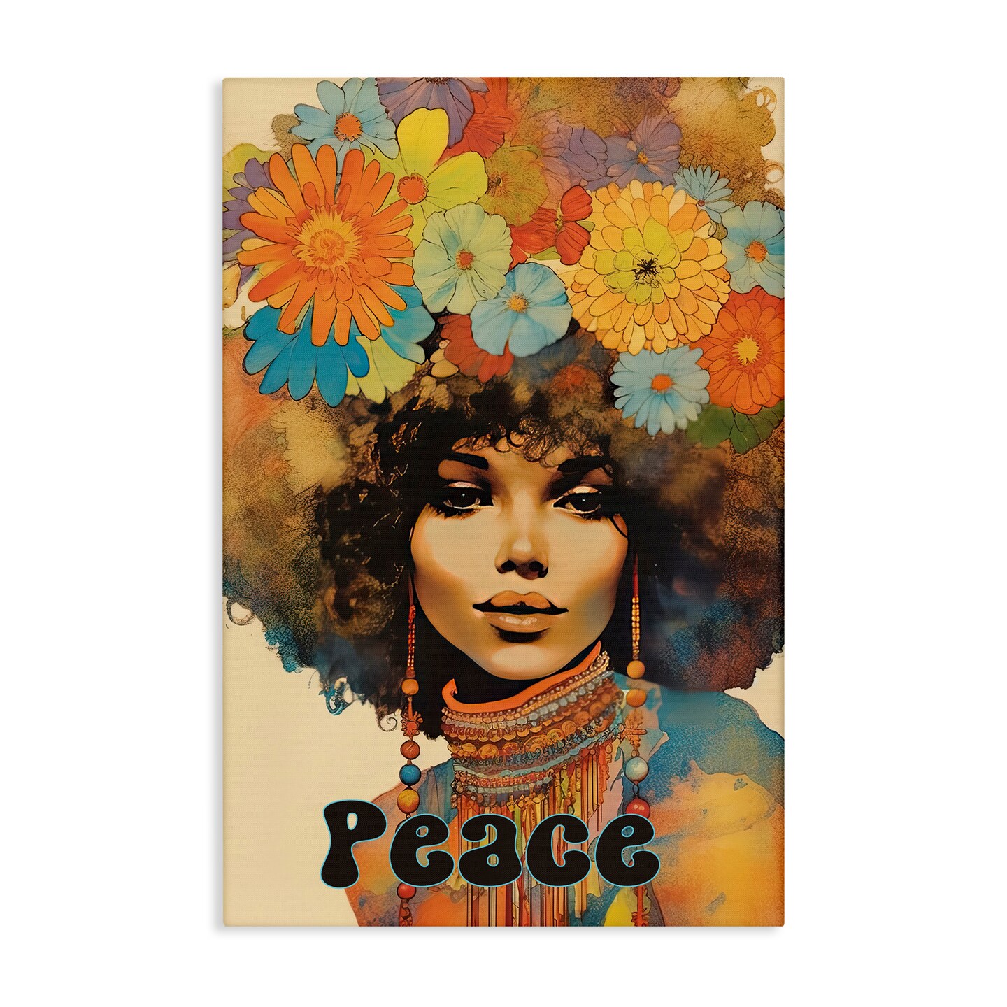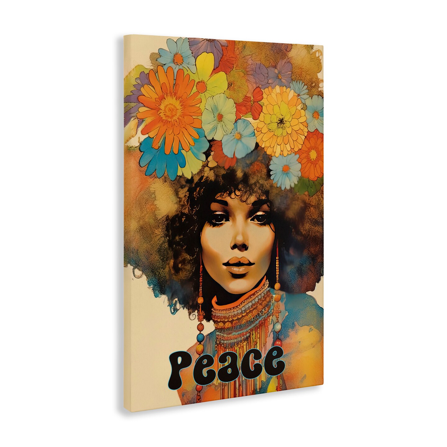 Stupell Industries Peace Groovy Afro Girl Canvas, design by Sasha