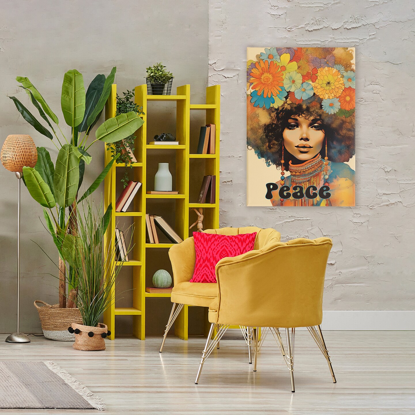 Stupell Industries Peace Groovy Afro Girl Canvas, design by Sasha
