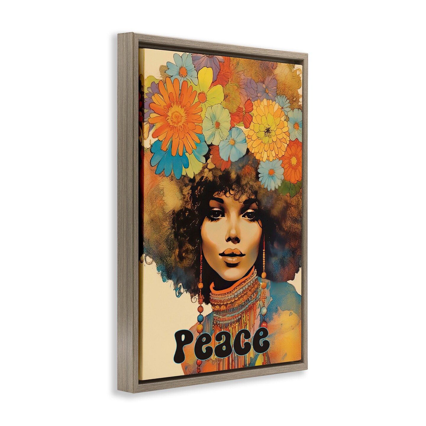 Stupell Industries Peace Groovy Afro Girl Floating Frame, design by Sasha
