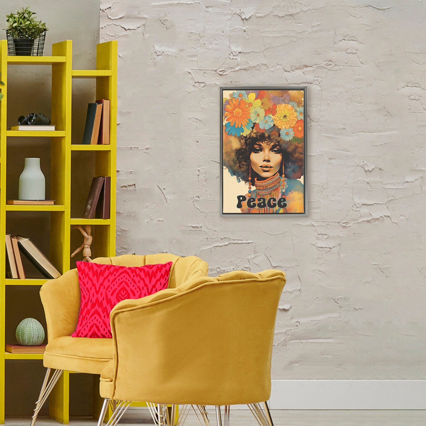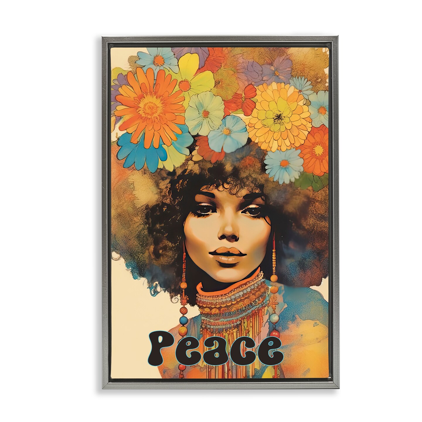 Stupell Industries Peace Groovy Afro Girl Floating Frame, design by Sasha
