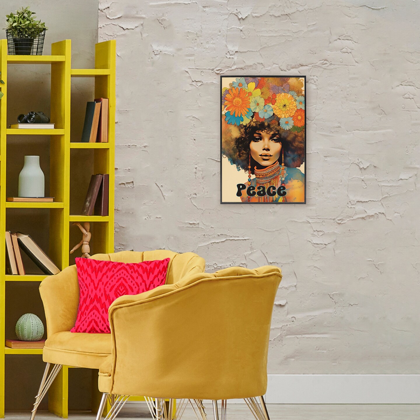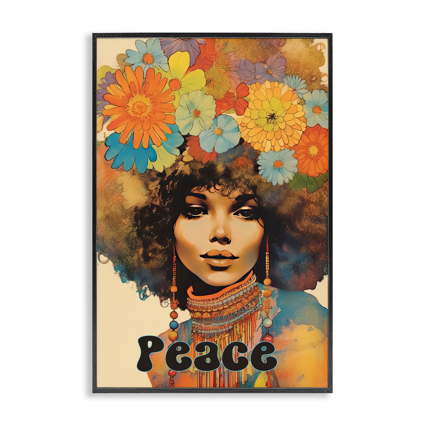 Stupell Industries Peace Groovy Afro Girl Framed Giclee, design by Sasha