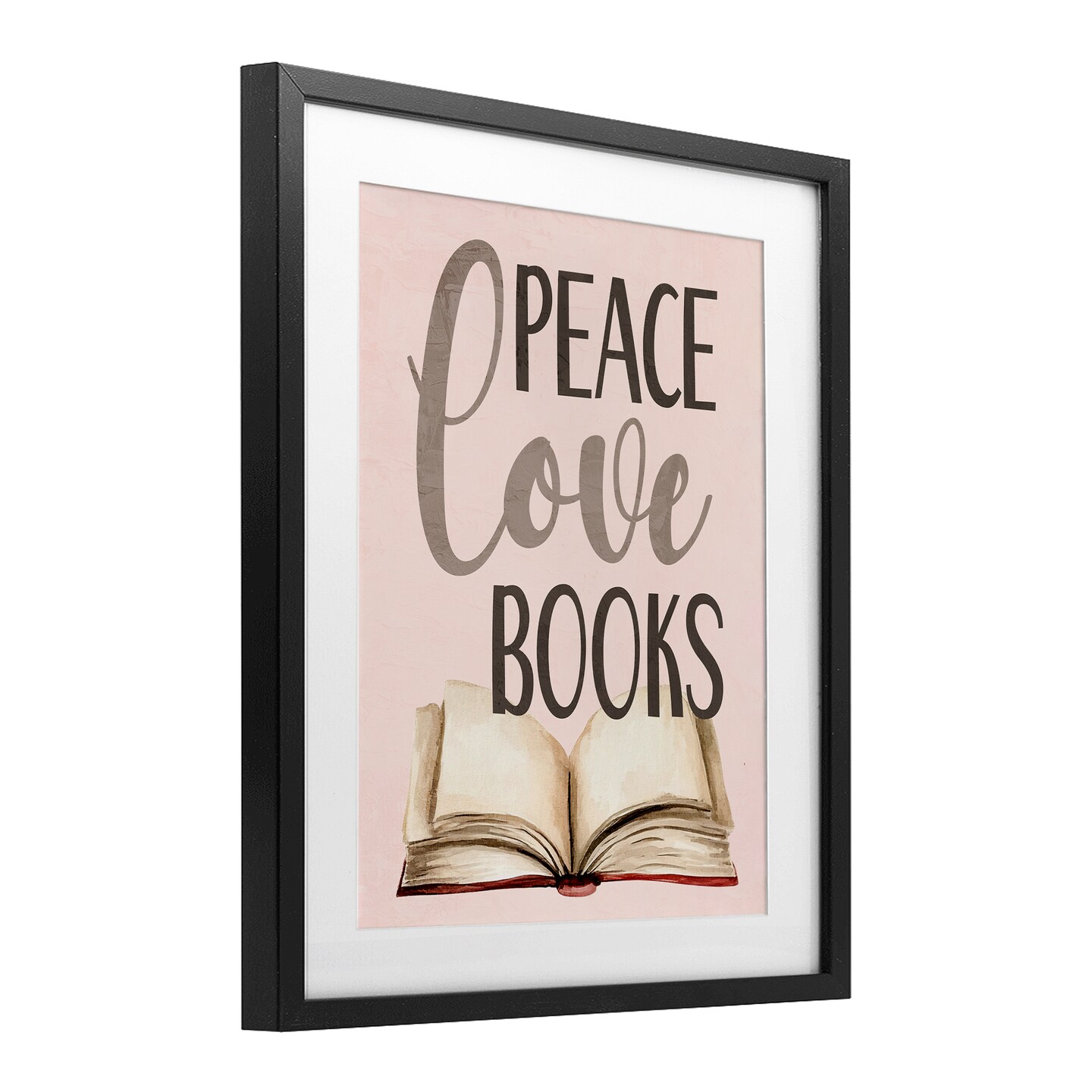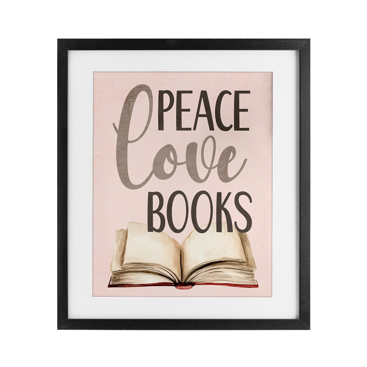 Stupell Industries Peace Love Books Framed Print Under Glass, design by Kim Allen