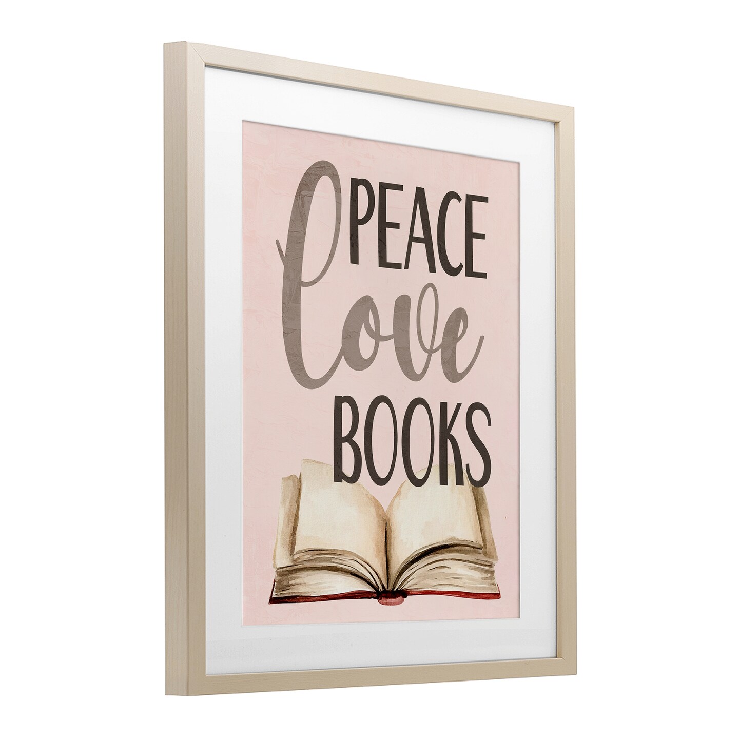 Stupell Industries Peace Love Books Framed Print Under Glass, design by Kim Allen