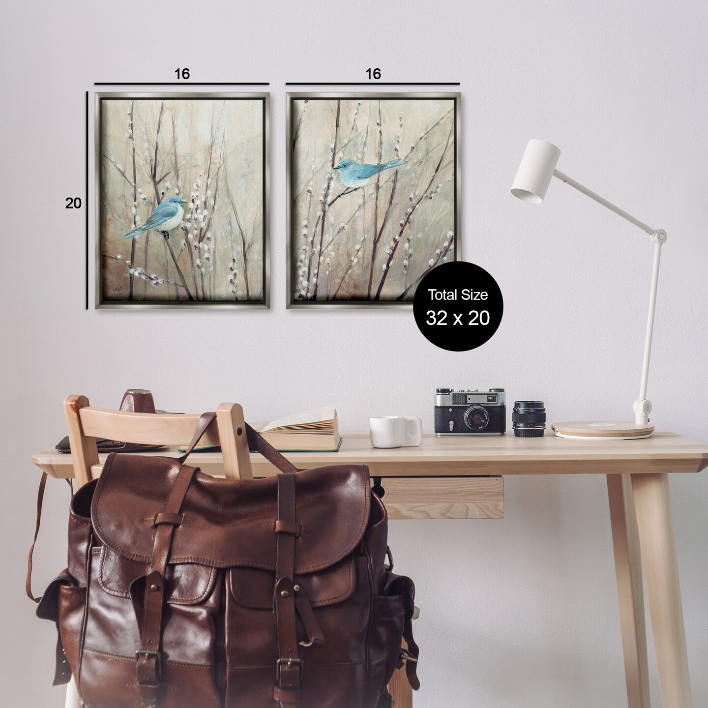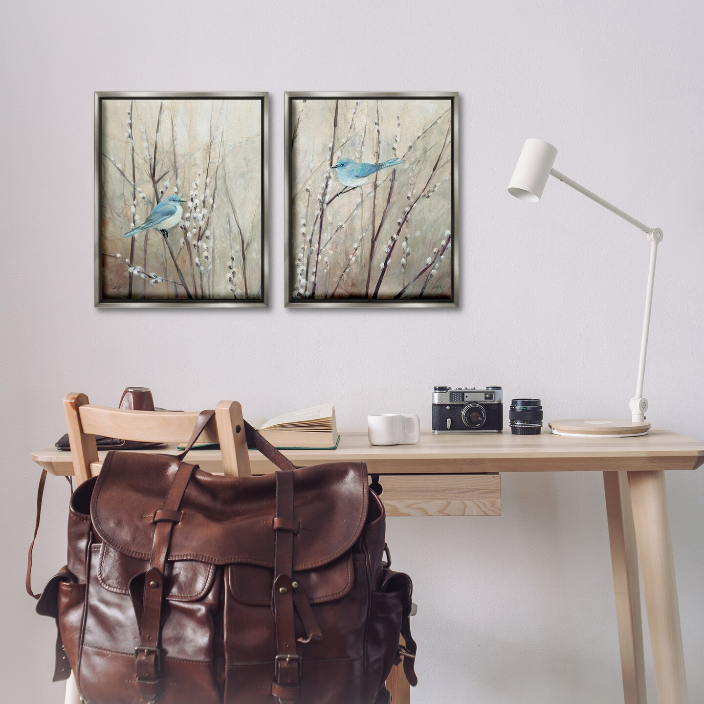 Stupell Industries Peaceful Perched Blue Birds Framed Floater Canvas Wall Art