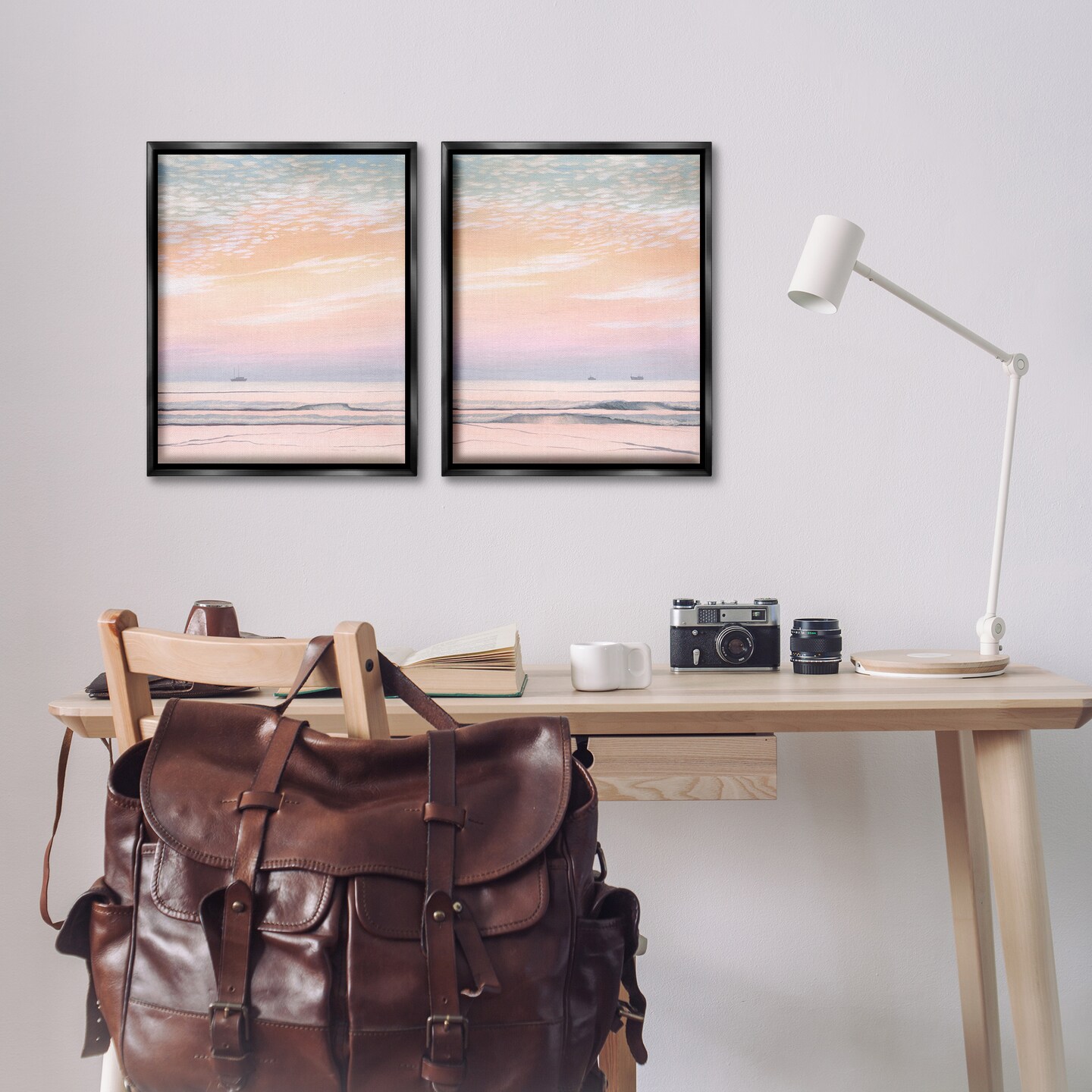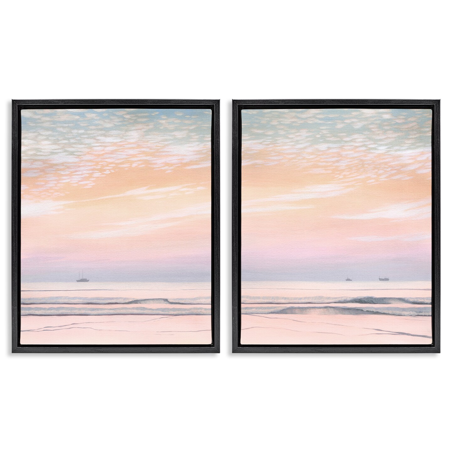 Stupell Industries Peachy Coastal Sunrise 2pc Floater Framed Canvas Wall Art Set Design by Grace Popp