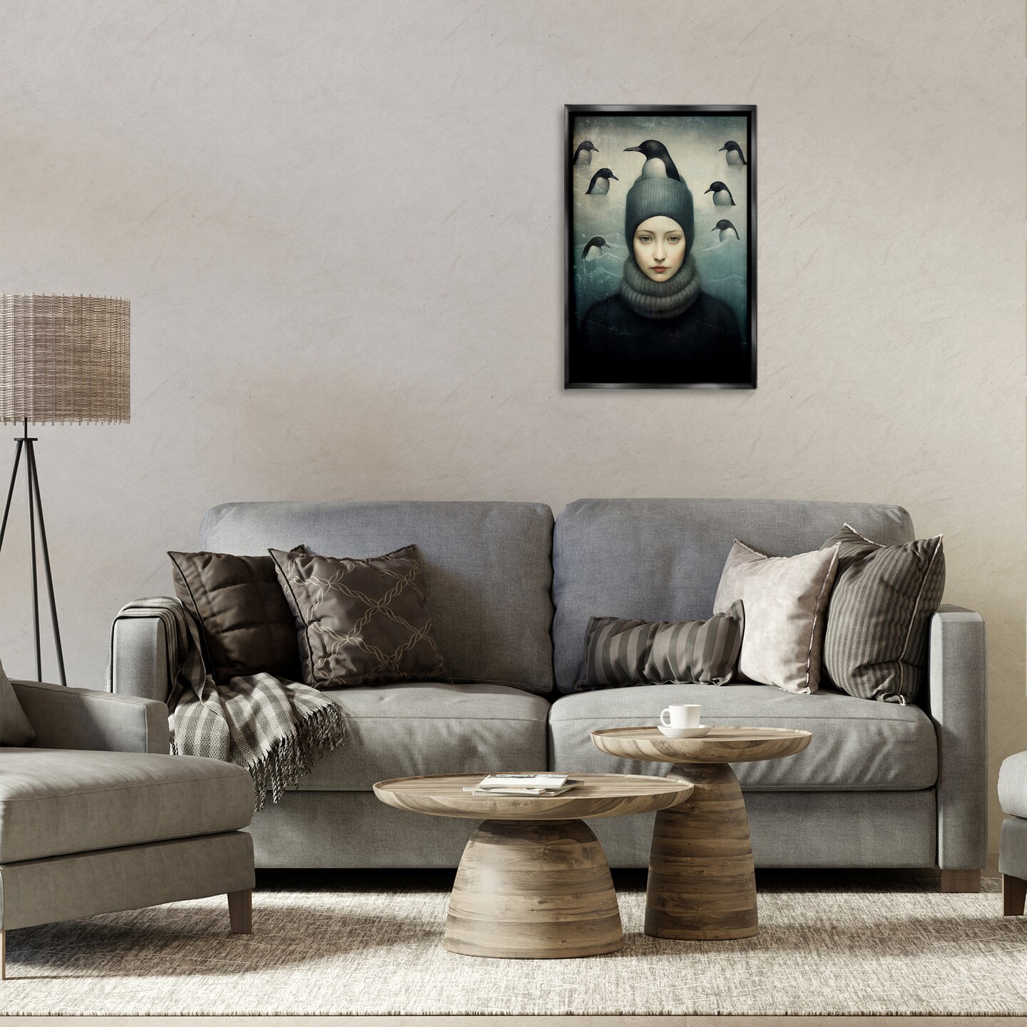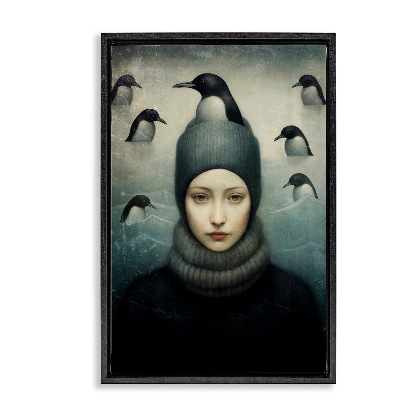 Stupell Industries Peeking Penguins & Woman Framed Floater Canvas Wall Art Design by Paula Belle Flores