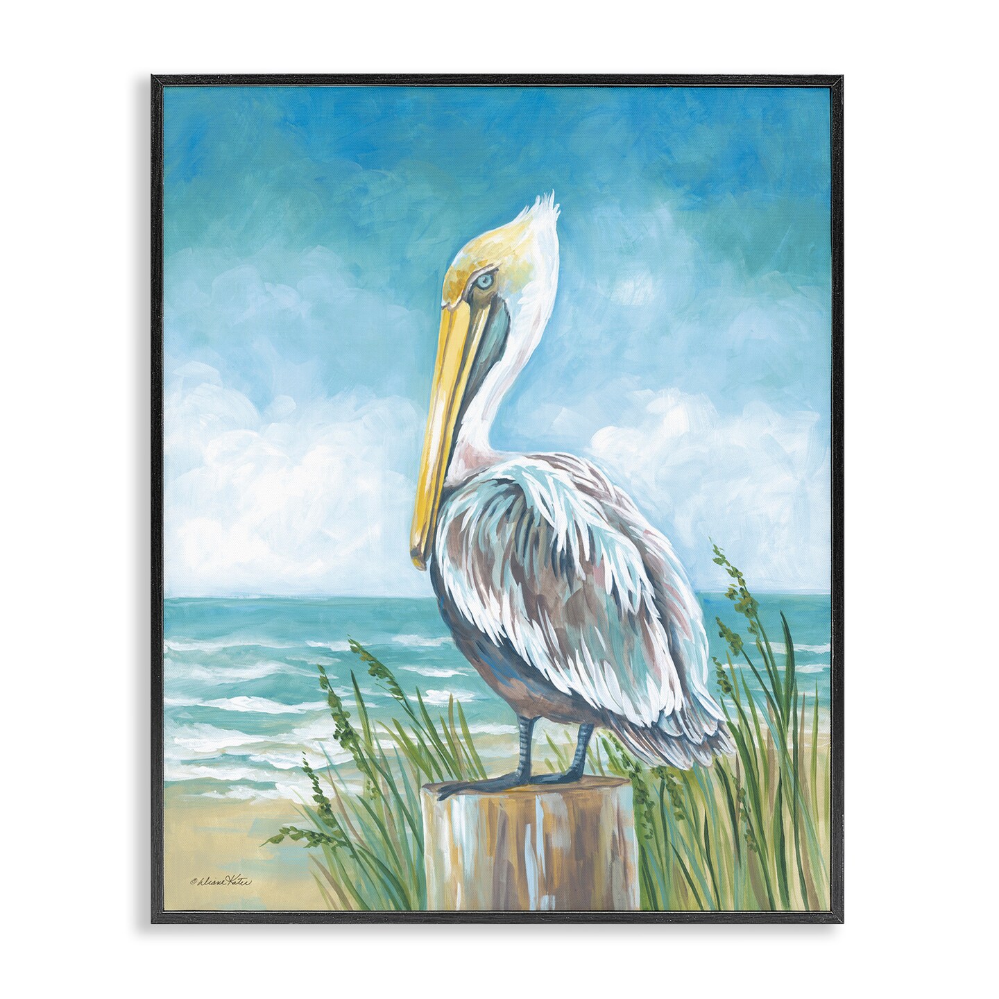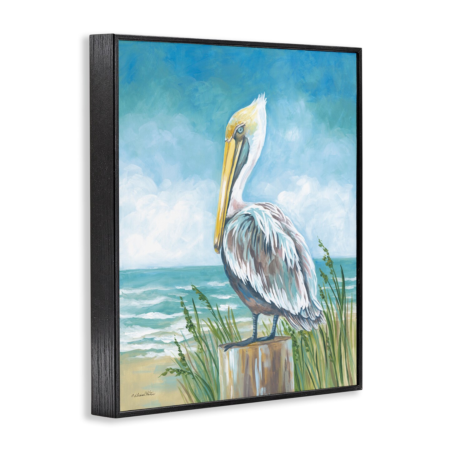 Stupell Industries Pelican Perched near Shore Framed Giclee Design by Diane Kater