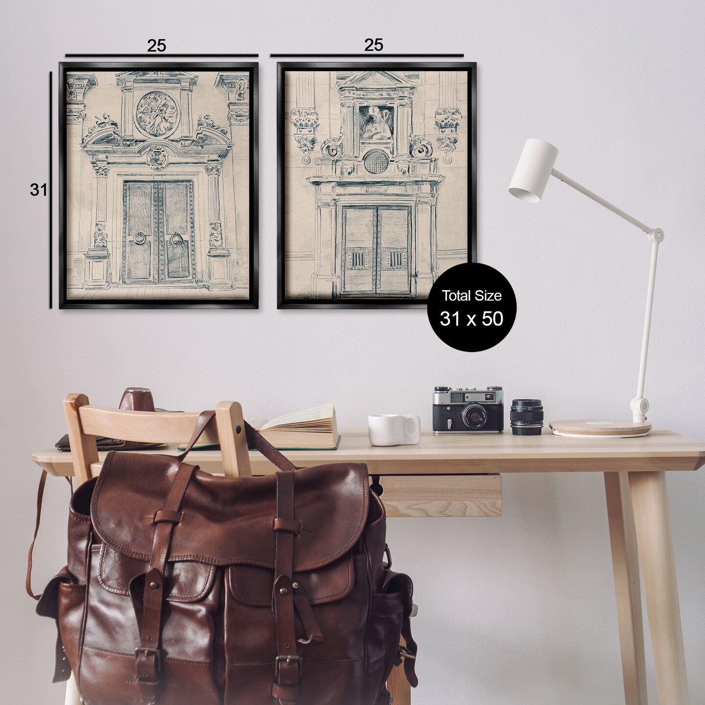 Stupell Industries Pencil Sketch Ornate Door 2 pc Framed Floater Canvas Wall Art Set Design by June Erica Vess