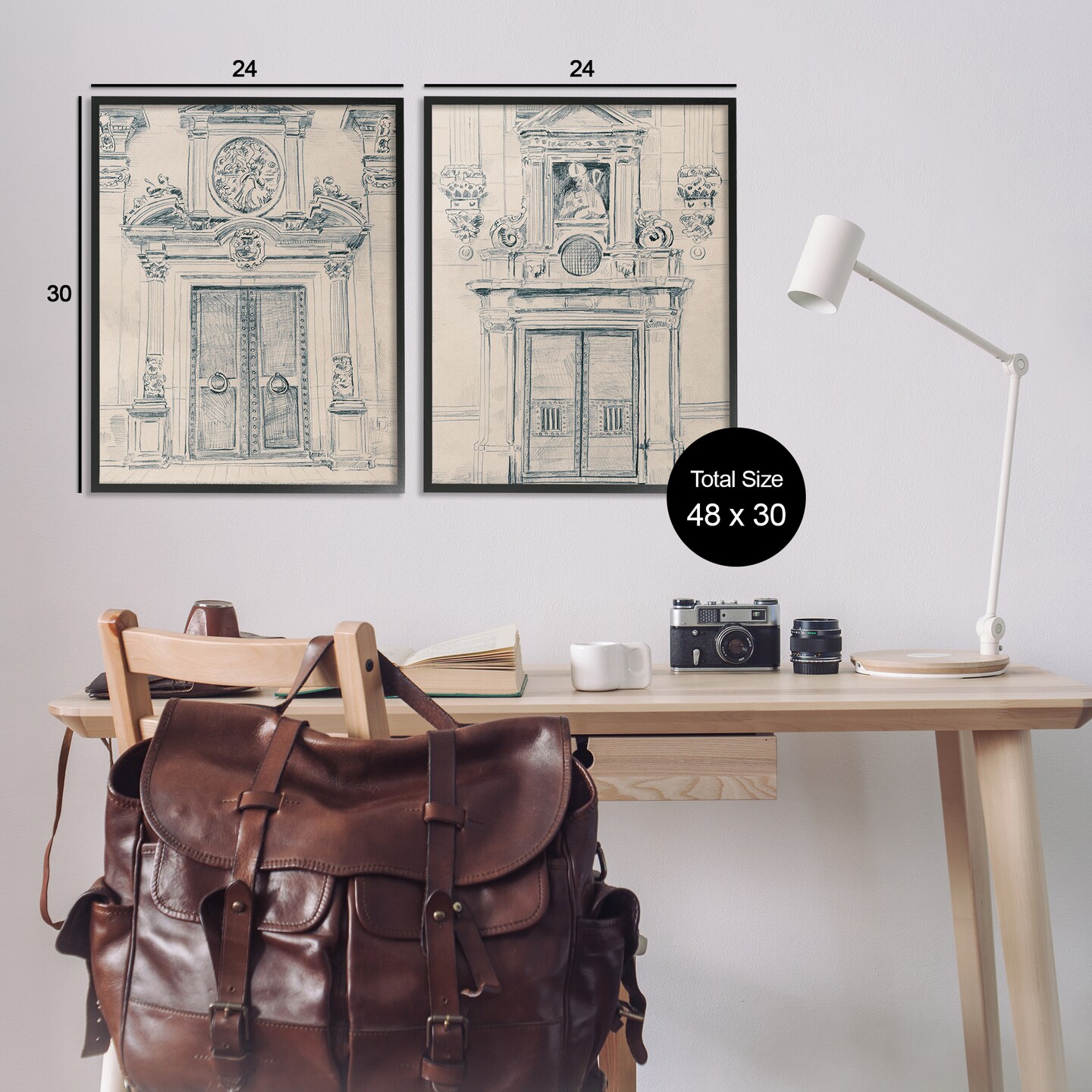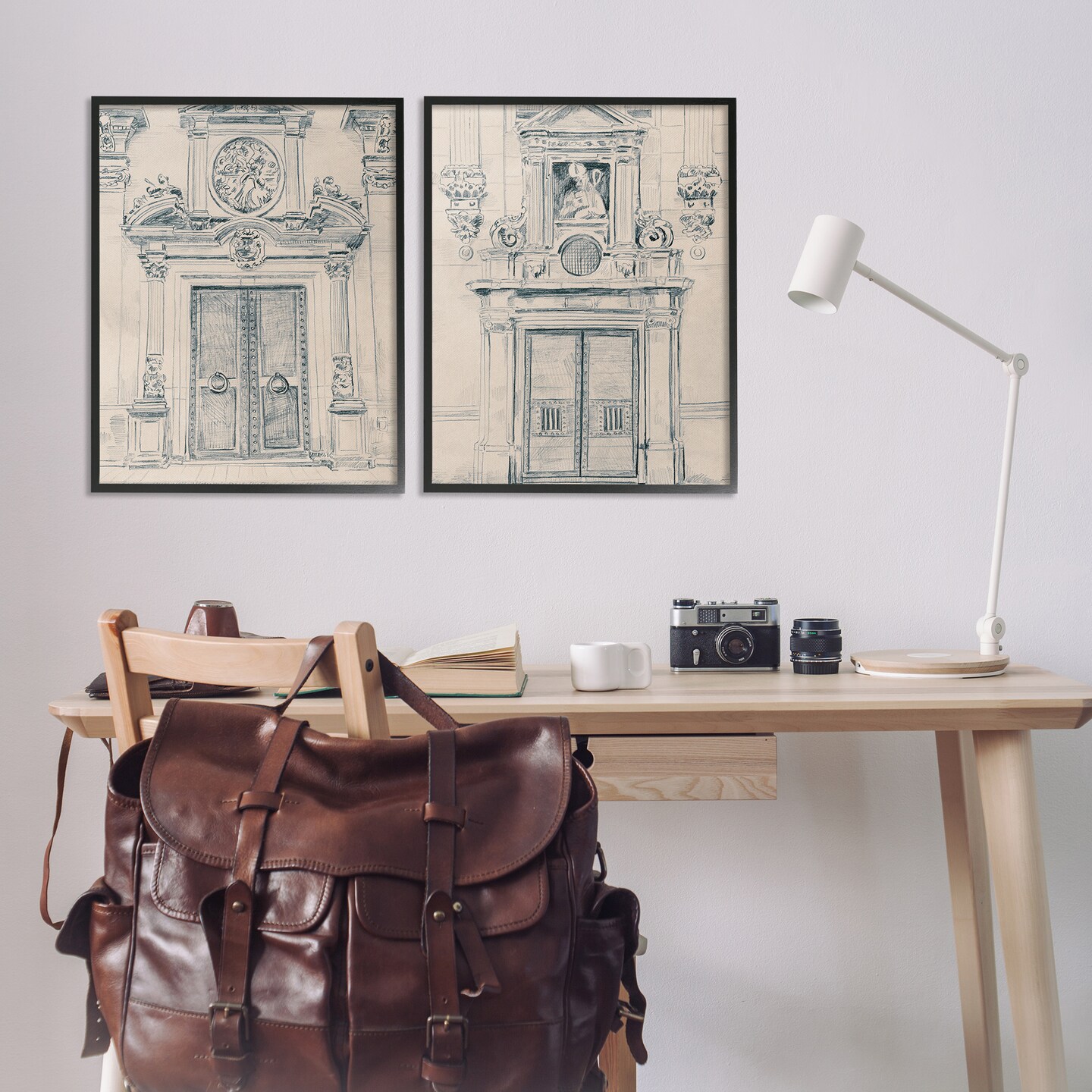 Stupell Industries Pencil Sketch Ornate Door 2 pc Framed Giclee Wall Art Set Design by June Erica Vess