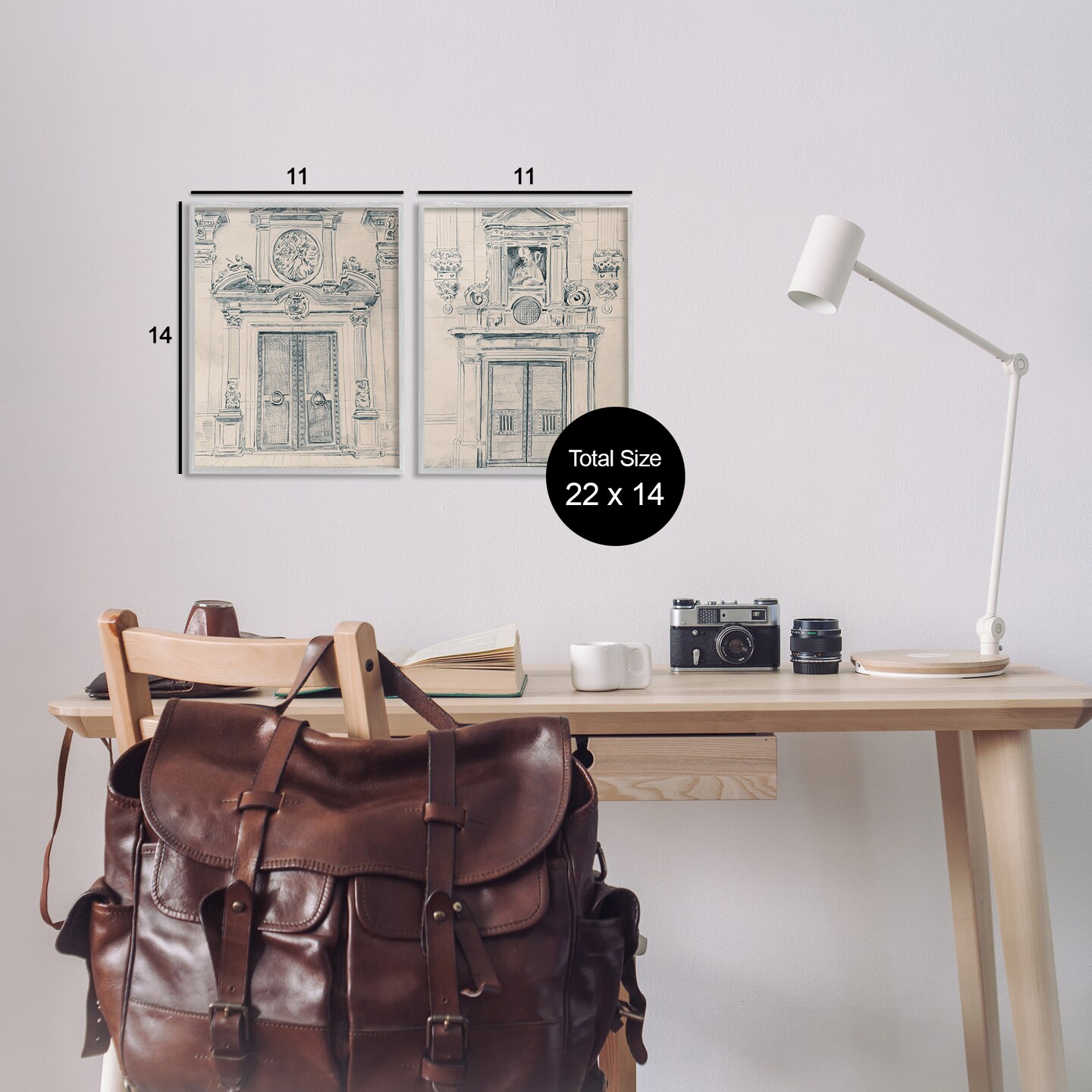 Stupell Industries Pencil Sketch Ornate Door 2 pc Framed Giclee Wall Art Set Design by June Erica Vess