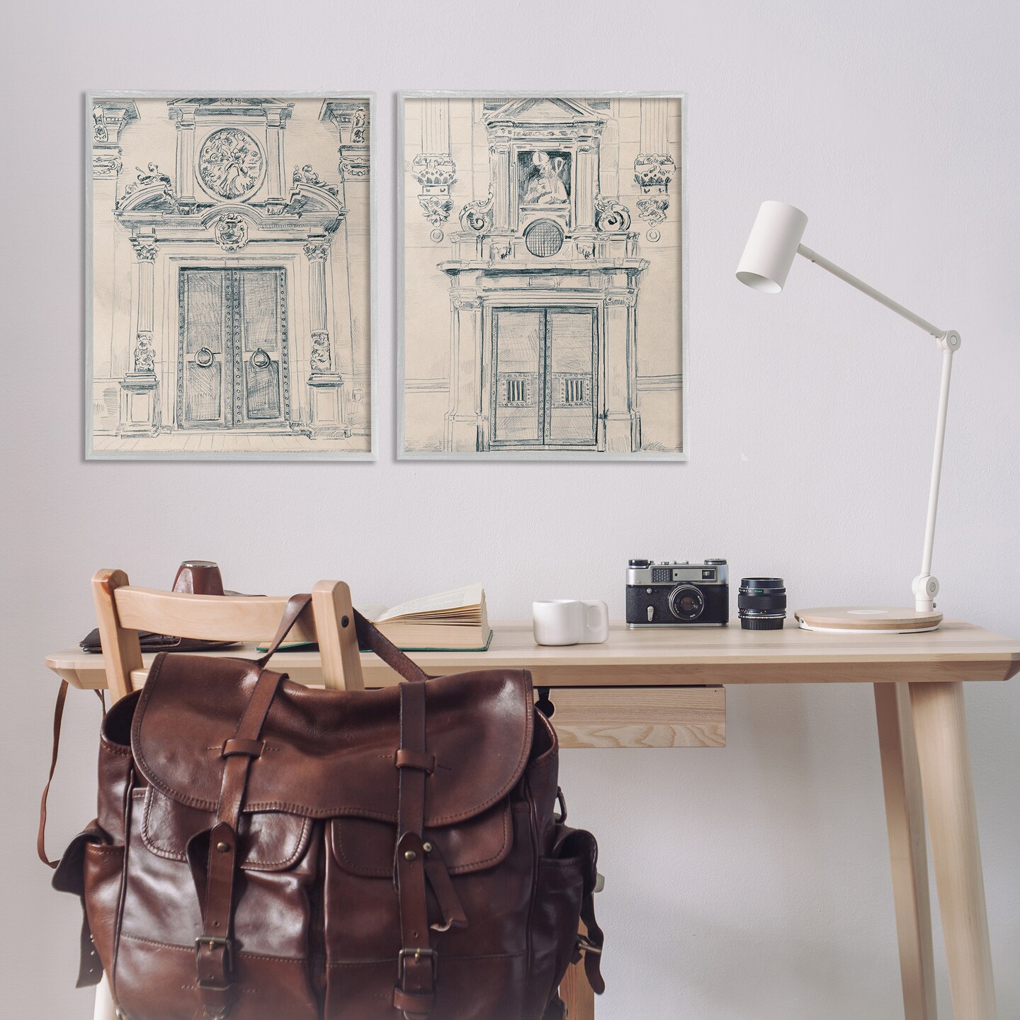 Stupell Industries Pencil Sketch Ornate Door 2 pc Framed Giclee Wall Art Set Design by June Erica Vess