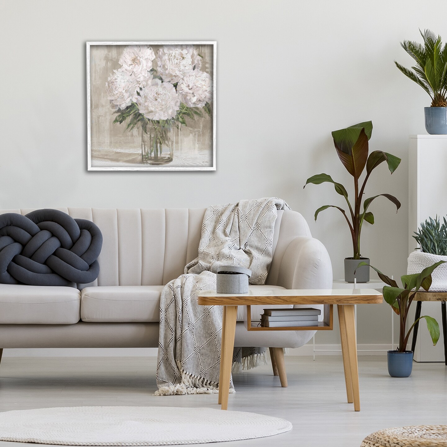 Stupell Industries Peony Blooms Beige Neutral Framed Giclee, design by Amber Sterling