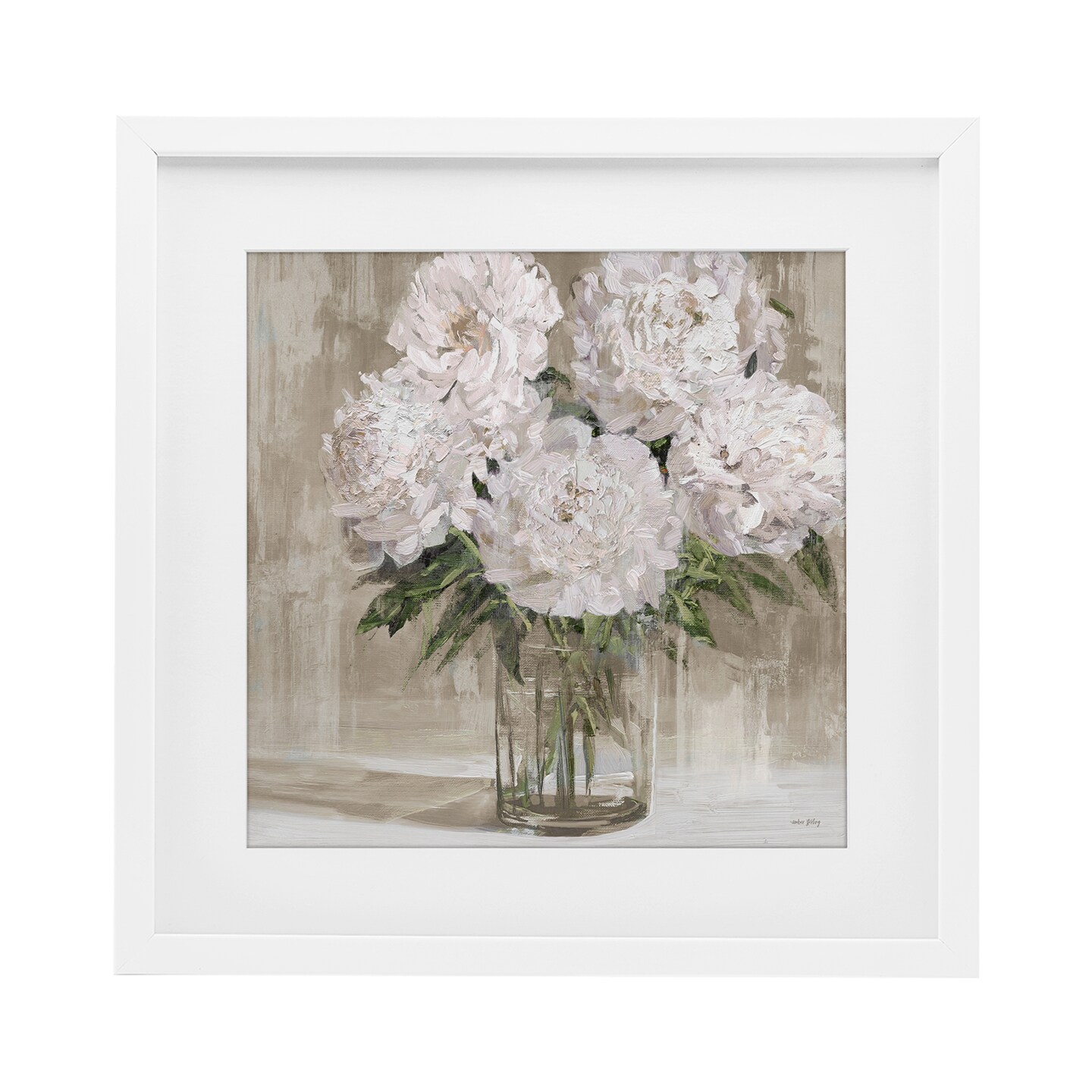Stupell Industries Peony Blooms Beige Neutral Framed Print Under Glass, design by Amber Sterling