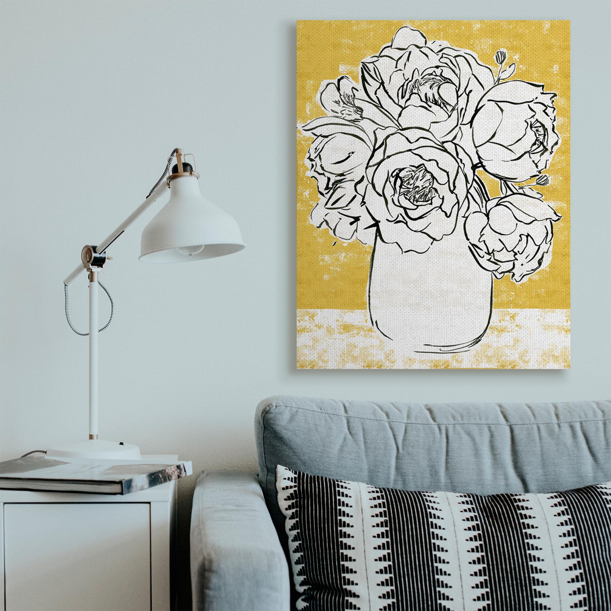 Stupell Industries Peony Sketch Bouquet Contrasted Distressed Yellow Canvas Wall Art