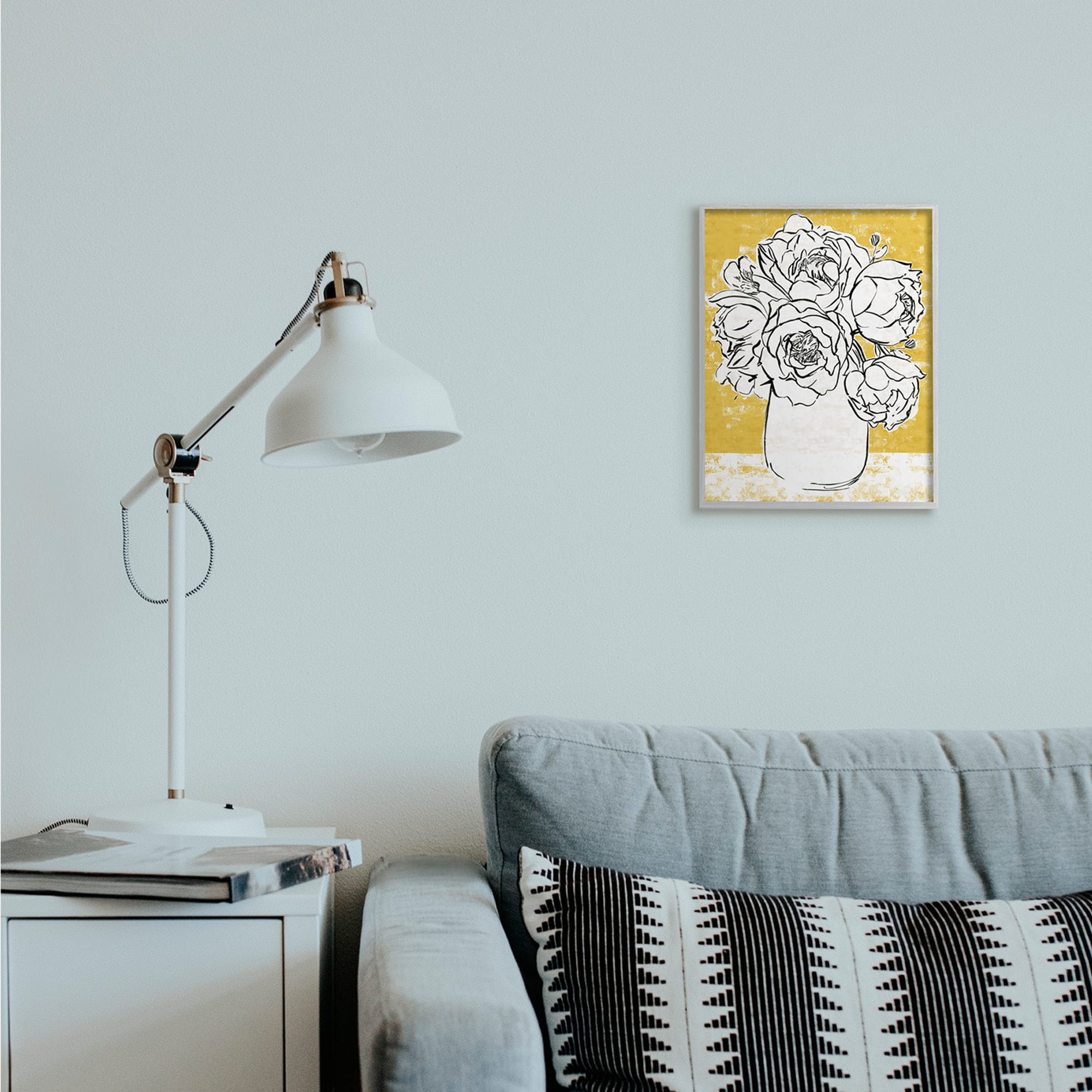 Stupell Industries Peony Sketch Bouquet Contrasted Distressed Yellow Framed Wall Art