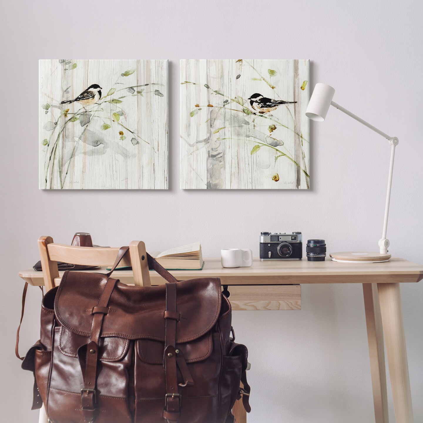 Stupell Industries Perched Birds Country Botanicals 2pc Canvas Set Design By Sally Swatland